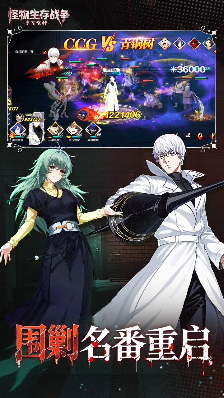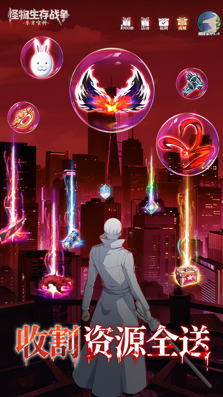 充值比例1元:10游戏货币!以金木研为首的《怪物生存战争》即将揭开帷幕:以赫子为刃穿梭东京街巷,在 20 区的废墟中抵御 CCG 围剿,向 “V” 组织的隐秘据点,探寻喰种起源的真相,改写人与喰种的命运走向!【东京围剿 名番重启】20 区围剿、青铜树据点突袭、枭驱逐战、月山家宴会对峙、CCG 总局防御、流岛战役、黑色多奈托围剿,“V” 组织总部决战,原作名番延伸再创,剧情分支连载演绎,你的每一个抉择都将影响结局的走向! 【爆燃赫战 热血对决】完美还原赫子与库因克的流畅对决,高速瞬移穿梭战场,瞄准要害一击制敌!革新全视角 3D 沉浸热血战斗,赫子爆发特效拉满,原版配音搭配燃向战斗 BGM,东京街头的冲突与守护,媲美剧场版级别的视觉冲击!