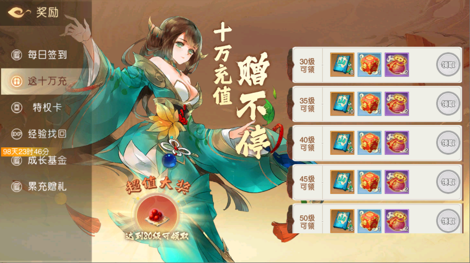4、每日签到、冲级赠礼,顶级神兵,万元充值送不停