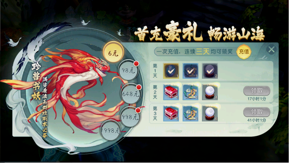 1、首充仅需0.06元送极品灵兽宠物蛋,提升战力快人一步