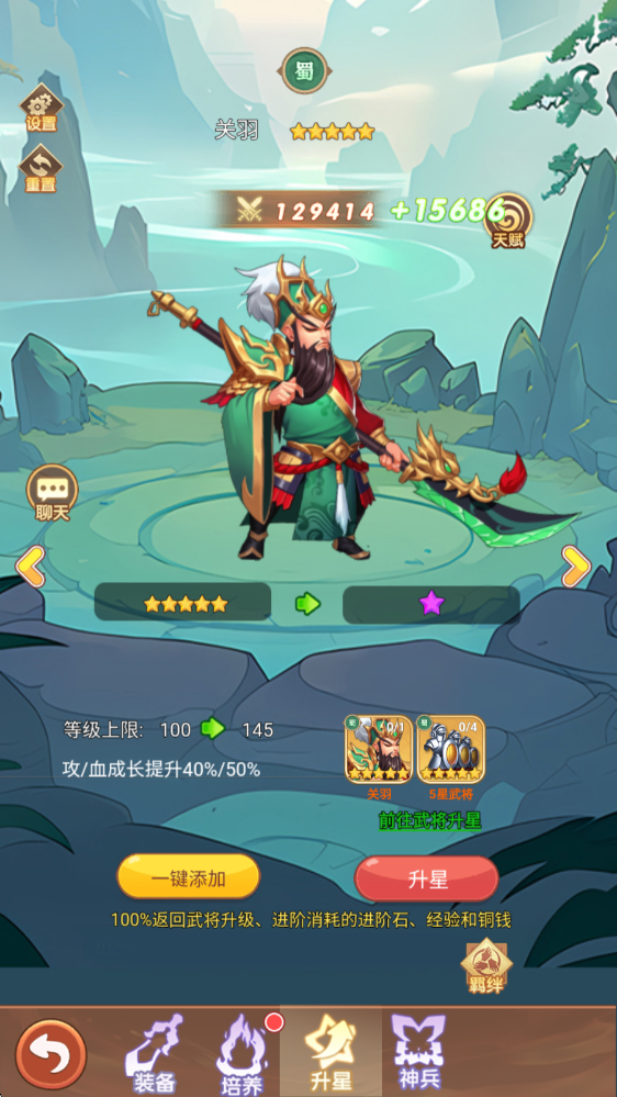 升星能大幅提升武将的属性,在升星的同时也会提升武