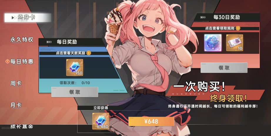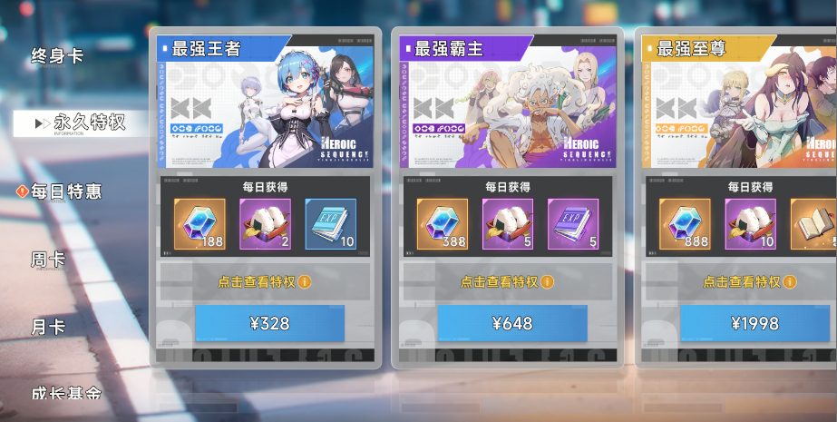 2、超值月卡终身卡微氪党必备,钻石领领领