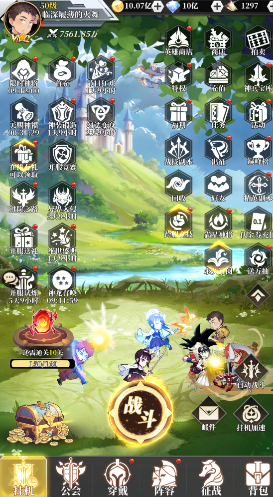 充值比例1元:10游戏货币 ★每日登录领万元代金券,可屯不过期,福利不玩虚的!!! ★闯关福利升级奖励大量代金券 ★上线即送VIP15、SP龙珠英雄宝箱*1、2888代金券*1、钻石*88888,金币*1888w ★完成任务送满星神将,巅峰战力开局 ★送一万连抽,助力组建梦幻阵容 ★全场0.05折,充值648元仅需3.28元 ★后缀说明:游戏首次及后续充值都为0.05折。即0.05折动漫乱斗