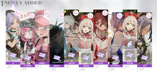 抽卡共计有四,分别为新人应援、常驻招募、幻想同人女和罗塔优选(包含时装家具武器等)。其中新手卡池50抽保底出SSR,常驻卡池100抽保底出SSR。至于新人应援,有着8折的优惠,8张票便可以十连。