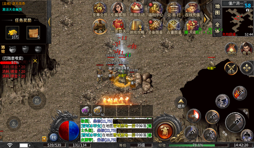 充值比例1元:100元宝 ★个人首爆★ 杀怪获得不同装备还会获得大量金币 ★在线奖励★ 在线一定时长即可领取在线奖励,获得大量材料 ★七日签到★ 每天登陆即可点击领取奖励,获得大量金币与藏宝图 ★怪兽轮盘★ 杀怪即可参与抽奖,材料元宝杀怪即拿