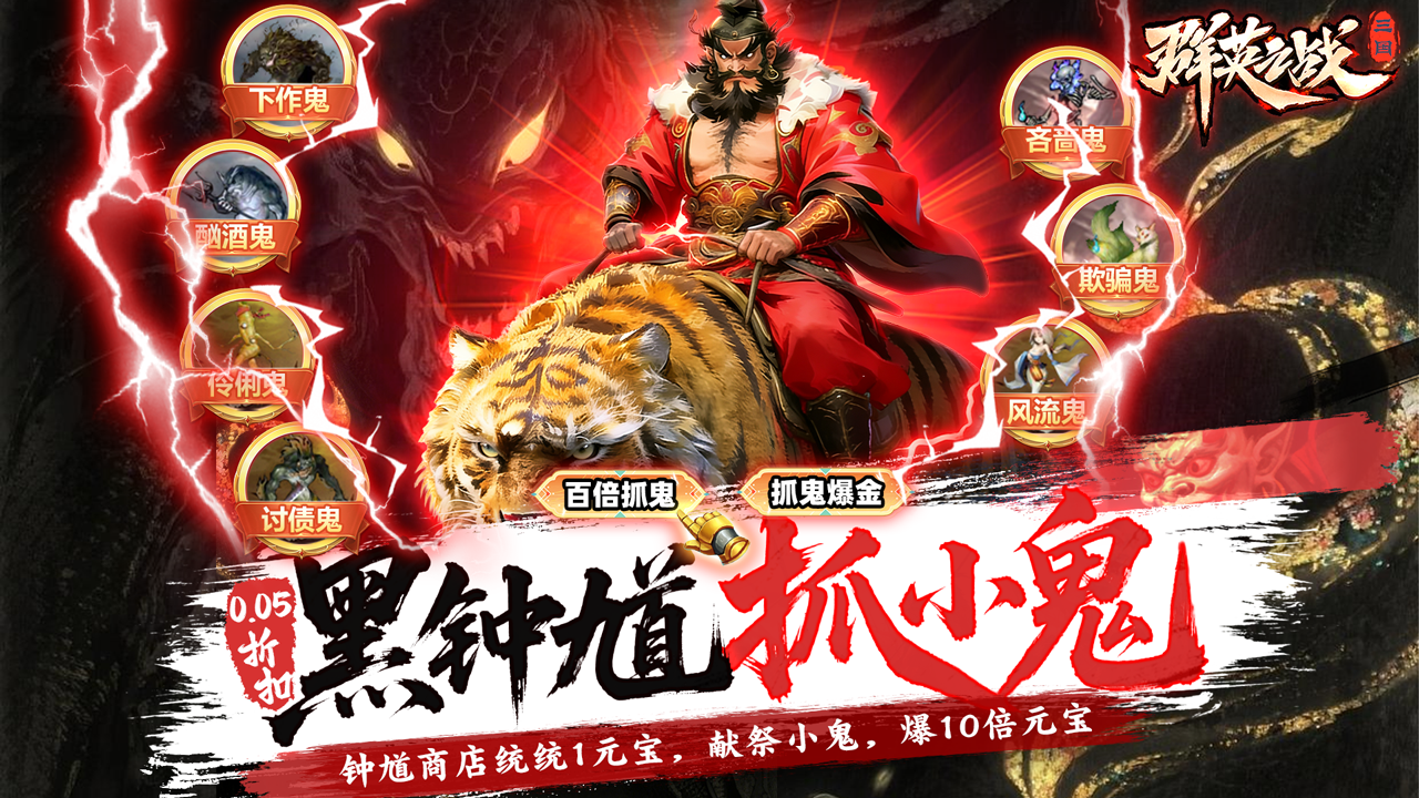 1、黑钟馗来袭,抓小鬼可在钟馗处兑换元宝