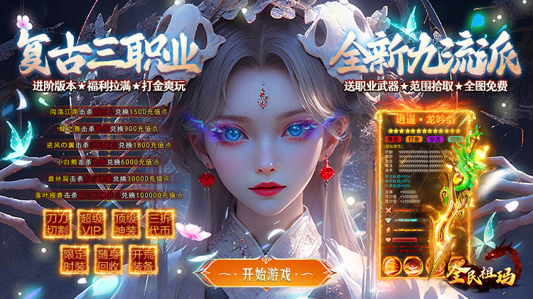 充值比例1元:100元宝 ★送充值卡:每天登录游戏送648充值卡 ★开局福利:开局送职业武器,开荒装备,开荒元宝,职业流派技能书 ★开局特权:开局送刀刀绿毒,自动拾取,范围拾取 ★百万真充:魔猎兑换真充值点,免费兑换游戏道具、时装、称号 ★超高爆率:所有道具全靠打,小怪也能爆神装 ★其他福利:七天登陆送“猛龙出江”限定时装 ★九流派系:三职业九流派探索更多玩法