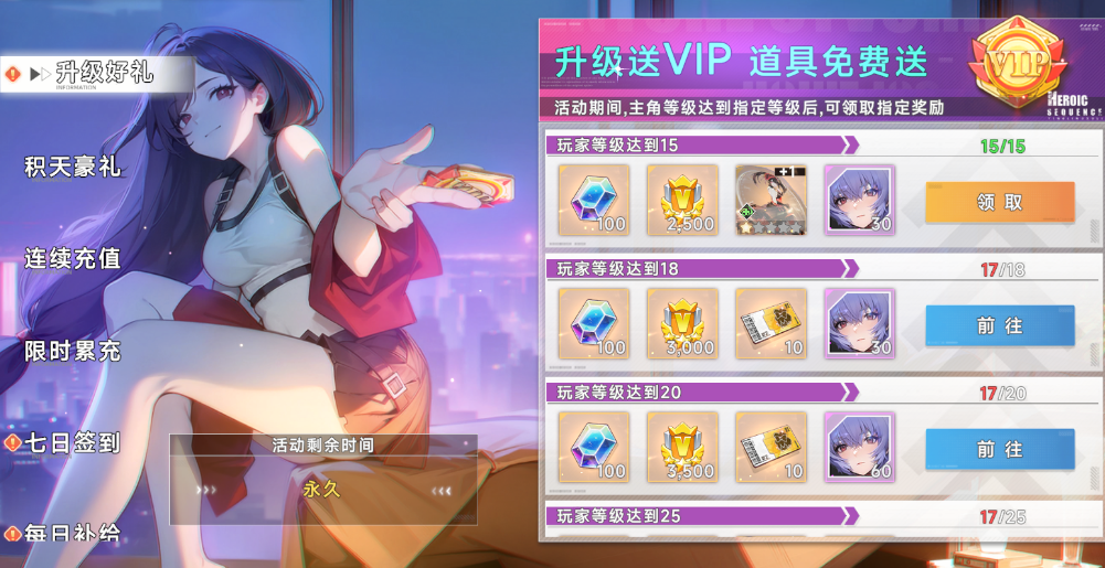 2、升级就送VIP 道具、钻石免费送