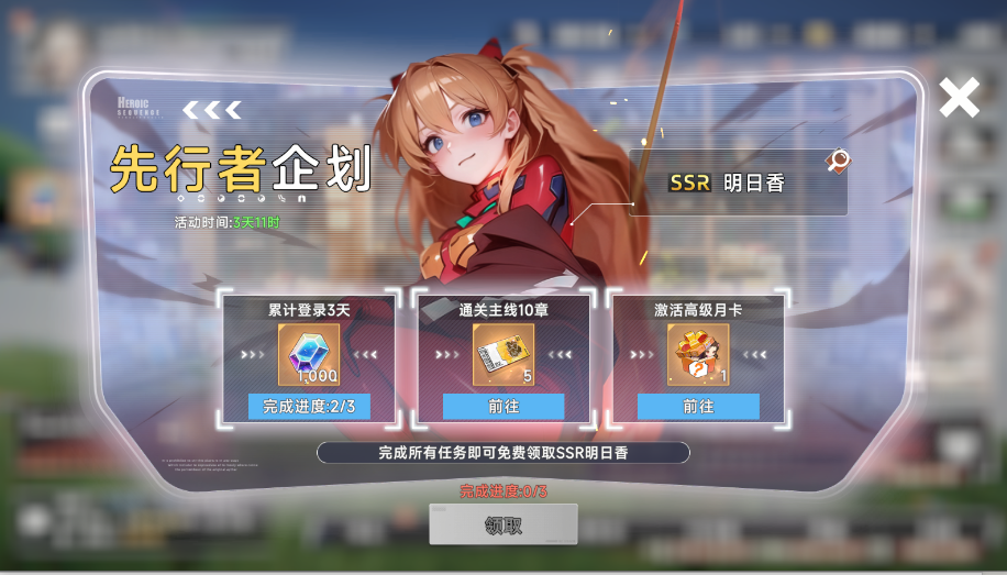 6、完成所有任务免费领取SSR明日香!