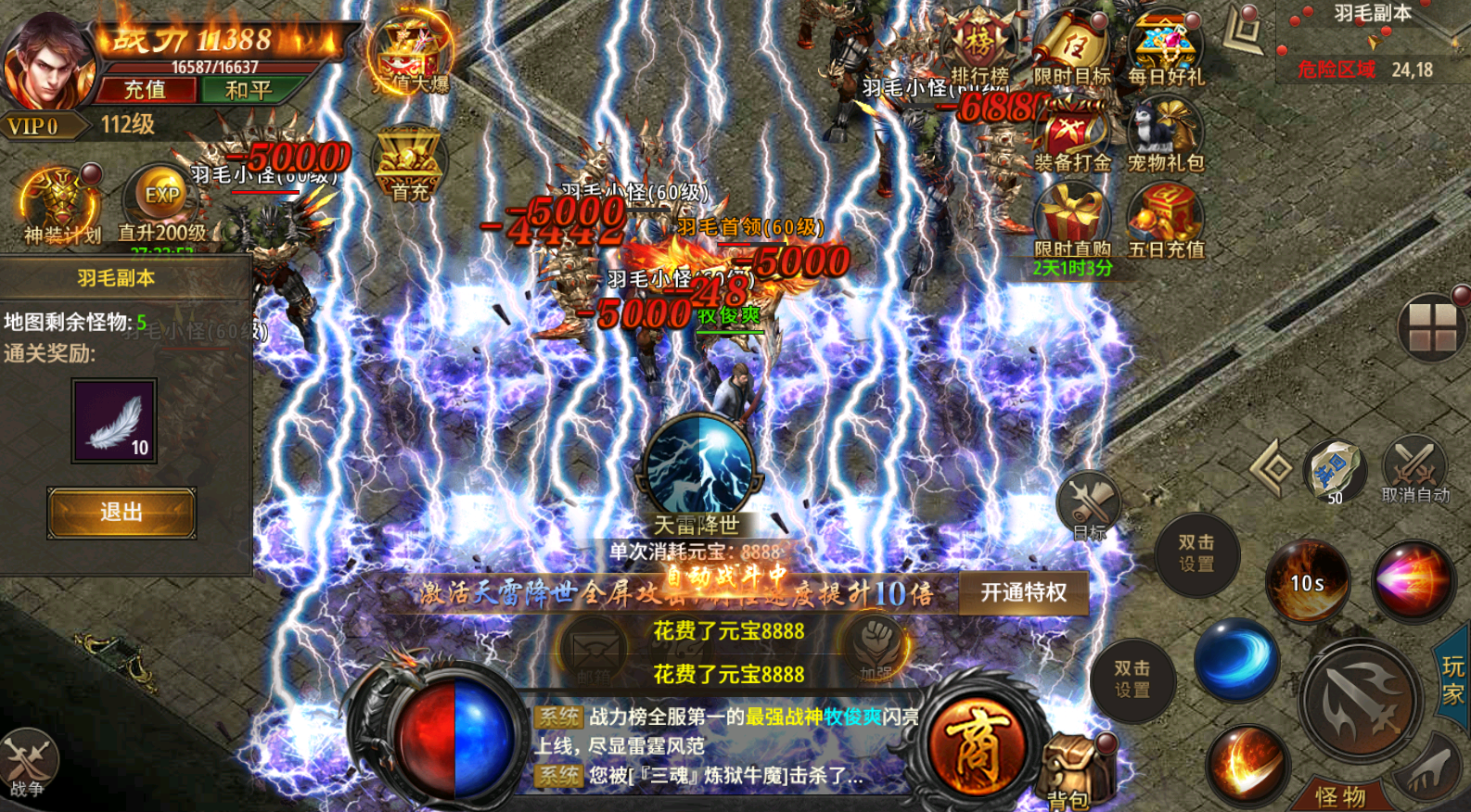 充值比例1元:100钻石 ★【上线福利】自动回收-自动拾取-刀刀切割!基础功能绝不卡玩家! ★【每日掉落】充值3.5折起!每日打怪掉直充币。充值货币领不停! ★特色魂环系统,超炫的魂环外观和特殊魂环技能,不仅拥有独一无二的外形,又可在打BOSS和PK中占有绝对优势 ★【传奇经典】回归传奇经典模式开区撸BOSS,运气好新手地直接出终极! ★【快人一步】首充、特权玩家可获取大量权限,快人一步! ★【后缀说明】充值3.5折!所有BOSS均可掉落直充币,直充币等同充值效果,屌丝的福音,玩游戏的同时又能挣钱!