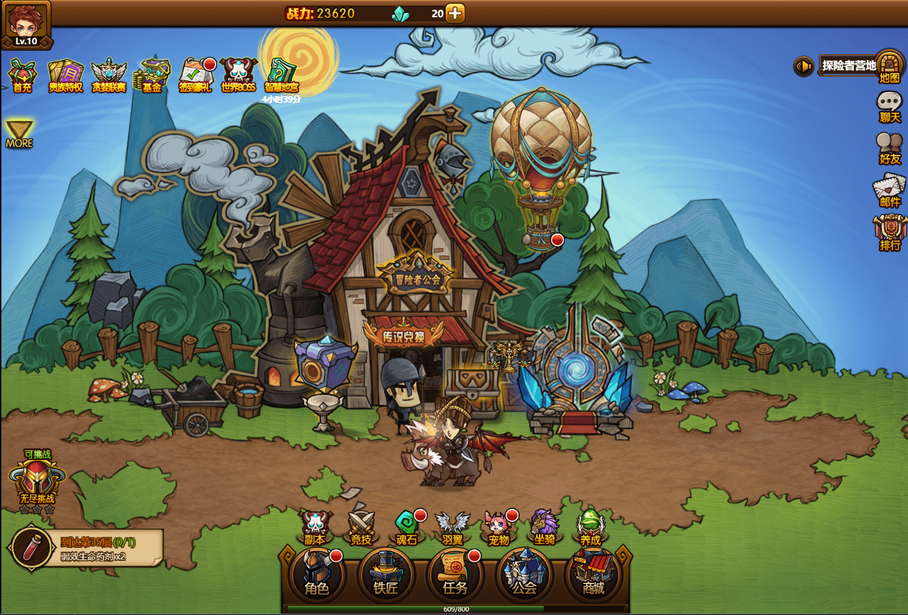 4刷图:在我们只要不断的寻找出口就行,没有必要把每一层的怪物都杀死(杀死小怪也可能会掉落药水和装备),每十层一个boss,杀死boss后会自动保存,然后可以进入探险者营地。