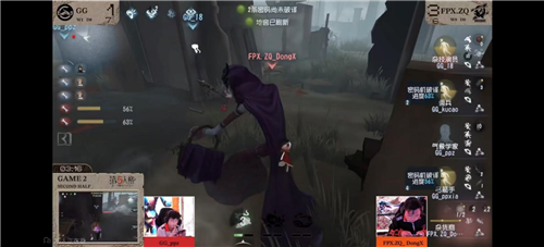第一天成都GG vs FPX.ZQ第二局下半场,成都GG求生者齐心协力牵制,四跑裁定乾坤:开局杂货商追击小树林的杂技演员,杂技演员跳球规避藤蔓,借助弹射反走拉开身距。吃刀后,中场的弓箭手帮挡藤蔓并补上一箭,陪跑帮助杂技演员拉开距离。杂技演员顺利吃出闪现倒地。一救下椅,杂技演员连续规避抽刀和碎石,拖出化险为夷时间并使得气象学家修开自己的密码机前来陪跑。利用气象学家的陪跑,杂技演员连续转点,直到开门战才第二次被击倒。杂货商挂上杂技演员后传送,卡中场的佣兵极限救下杂技演员,杂技演员反拉干扰耳鸣,顺利地窖逃生。拿下四跑终结比赛。