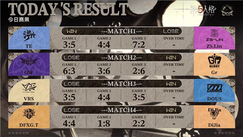 本周比赛中,职业战队北京WBG、ACT、TE和Gr发挥出色,两战全胜挺进胜者组决赛,民间队ZS.Lin双阵营齐发力,爆冷战胜DOU5战队。