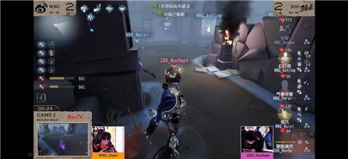 第三天ZOO vs 北京WBG第二局下半场,ZOO_NonSept歌剧演员千里奔袭,拉扯控场:开局歌剧演员博弈成功快速击倒空军,佣兵一救后,歌剧演员快速排到二救的气象学家逼救,挂飞空军后场上电机还有一台半多。随后,歌剧演员精准排到半状态气象学家,续上二手节奏。接着,歌剧演员传送一号机,击倒佣兵后影袭回小门,击倒前去救援的幻灯师。此后,歌剧演员利用自身的高机动性和传送在一号机和小门之间拉扯,慢慢逼掉求生者的状态和道具,求生者疲于奔命,幻灯师被针对淘汰,歌剧演员顺利拿下四抓。