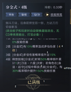 综上所述,强攻摸金不需要带其他攻击技能,单挂一个分金式即可伤害最大化,其他技能只会影响上述被动触发时间和打击效果。