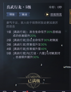 分金式有概率造成多倍(4倍)伤害,觉醒后5倍,有几率获得【刀法·六星】效果,即结算时获得连击且伤害提升,并有吸血效果。摸金二转后被动【刀法·恶煞】,百分比提升攻击力的同时提高流血状态概率,并且会减少【六星】的结算攻击次数。摸金三转被动【真武行龙】,在粽子血量低于30%时触发造成伤害提升至40%,在与【六星】同时触发时额外再次提升30%。
