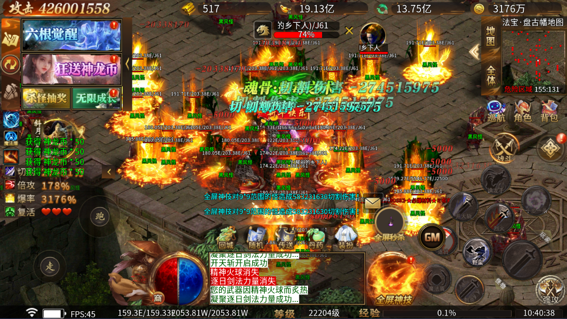 充值比例1元:1:10000神龙币 ★【上线即送】全屏神技 全屏绿毒 专属称号 1元充值卡*3000 主播特权 ★【专属绝技】斗转星移 上线送 千元充值送不停 ★【专属福利 】新人豪礼疯狂送送送! ★【全屏神技】 斩杀兽者得神技 ★【吸金神宠】 攻击吸龙币日进斗金 ★【无限成长 】 杀怪越多 奖励越丰厚 ★【后缀说明】登录送绝技