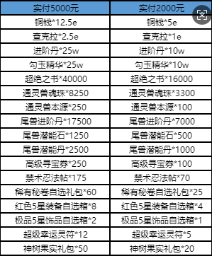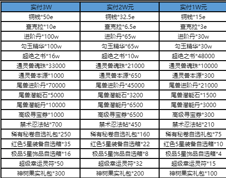 3、单日充值低于1W元,表格内16种道具可选择4种道具,单日充值高于1W元及以上,16种道具可选6种道具,单日充值高于2W元及以上,16种道具可选10种道具,且可重复选择同个道具3次