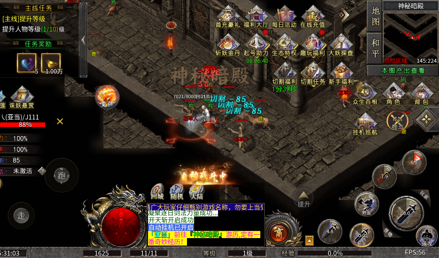 《王者之战》光速刀专属服,千件无级别专属,版本深度十个大陆。上线攻速拉满、自动回收、自动拾取、顶格背包、顶格仓库。前期剧情指引简单不烧脑,完成可领取宿命神器-大幅提升打怪效率。