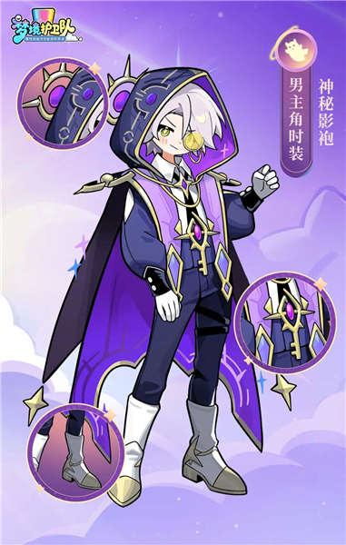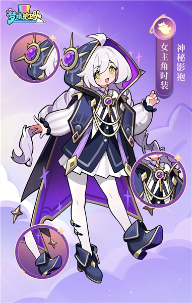 女装占星兜帽设计利落有型,帽侧镶嵌紫晶星芒装饰,神秘氛围中尽显元气灵动,现代感与魔法气质兼备。