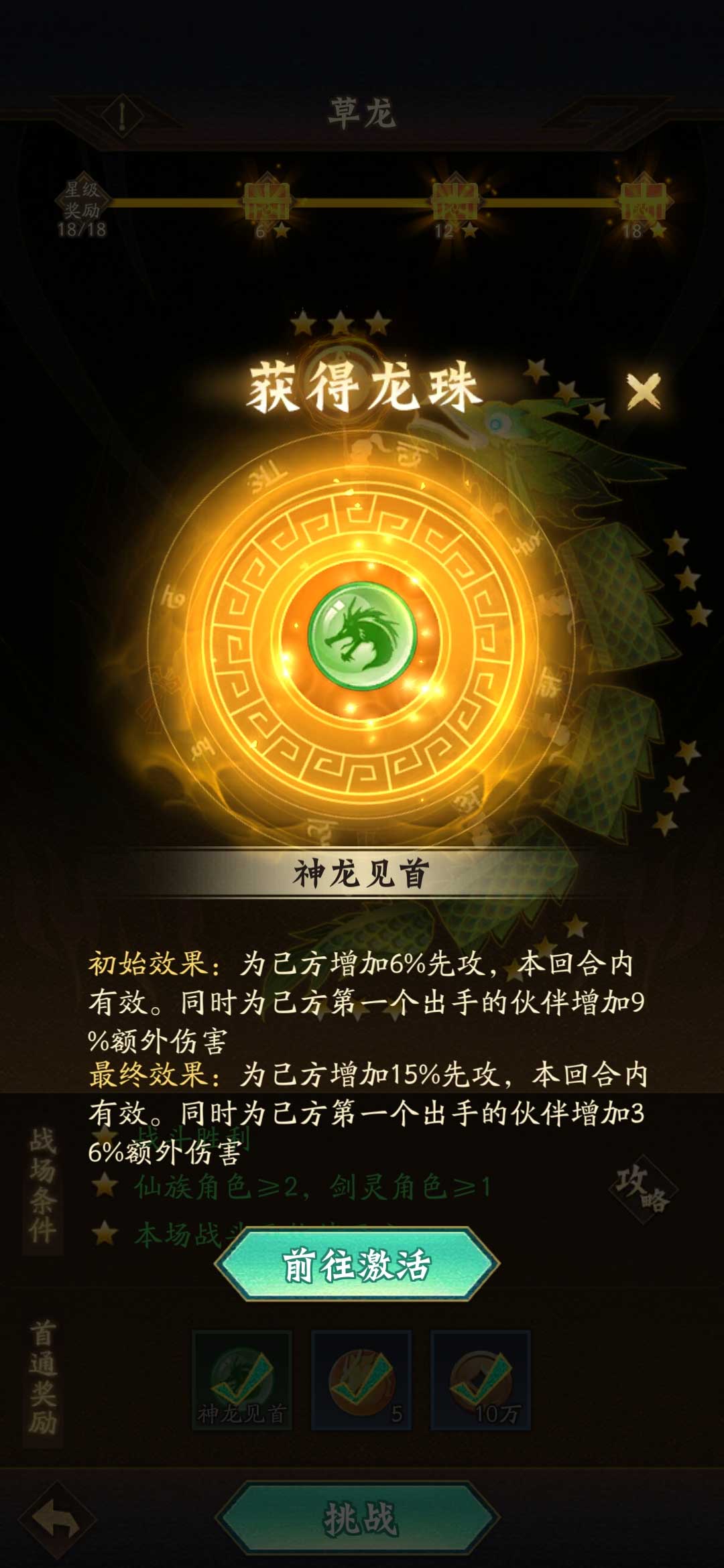 5、天外飞龙龙珠(龙珠在通过主线18-18后解锁),可在龙珠生效阶段为己方恢复至多100点气势。