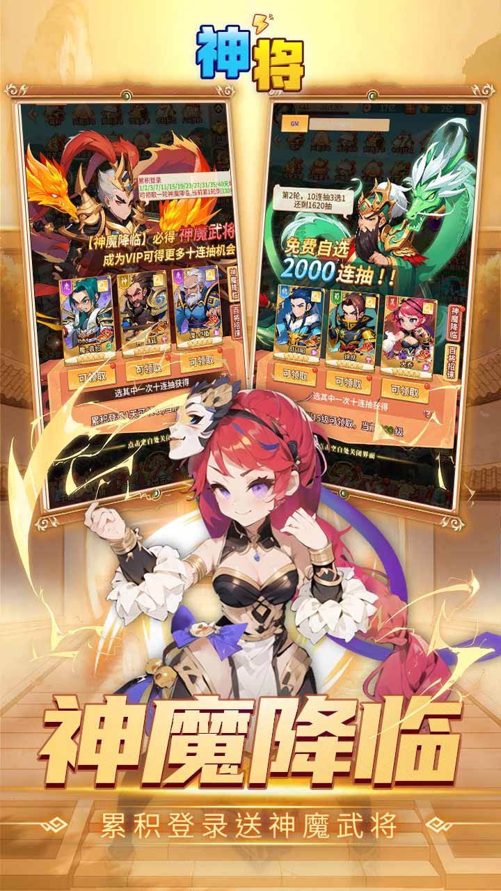 福利活动多到爆,升级送2000连抽,累积登录送神魔武将,连续八天海量资源,完成任务送核心,魂将开箱战力飙升快,画面精美,玩法多样,零氪党福音,强烈推荐入坑。