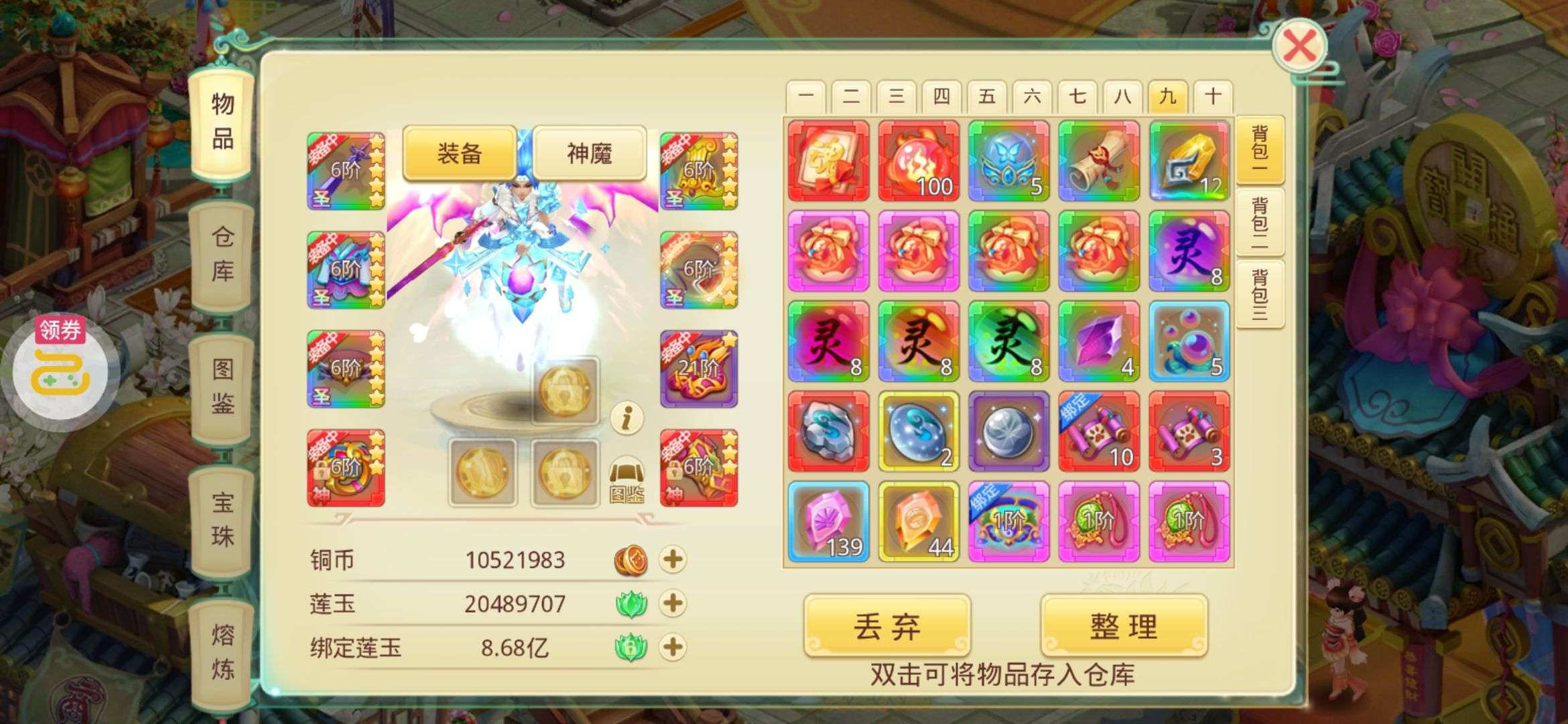 夺宝券*1、比武令*1、5星随机将魂*10(每个账号限领一次)