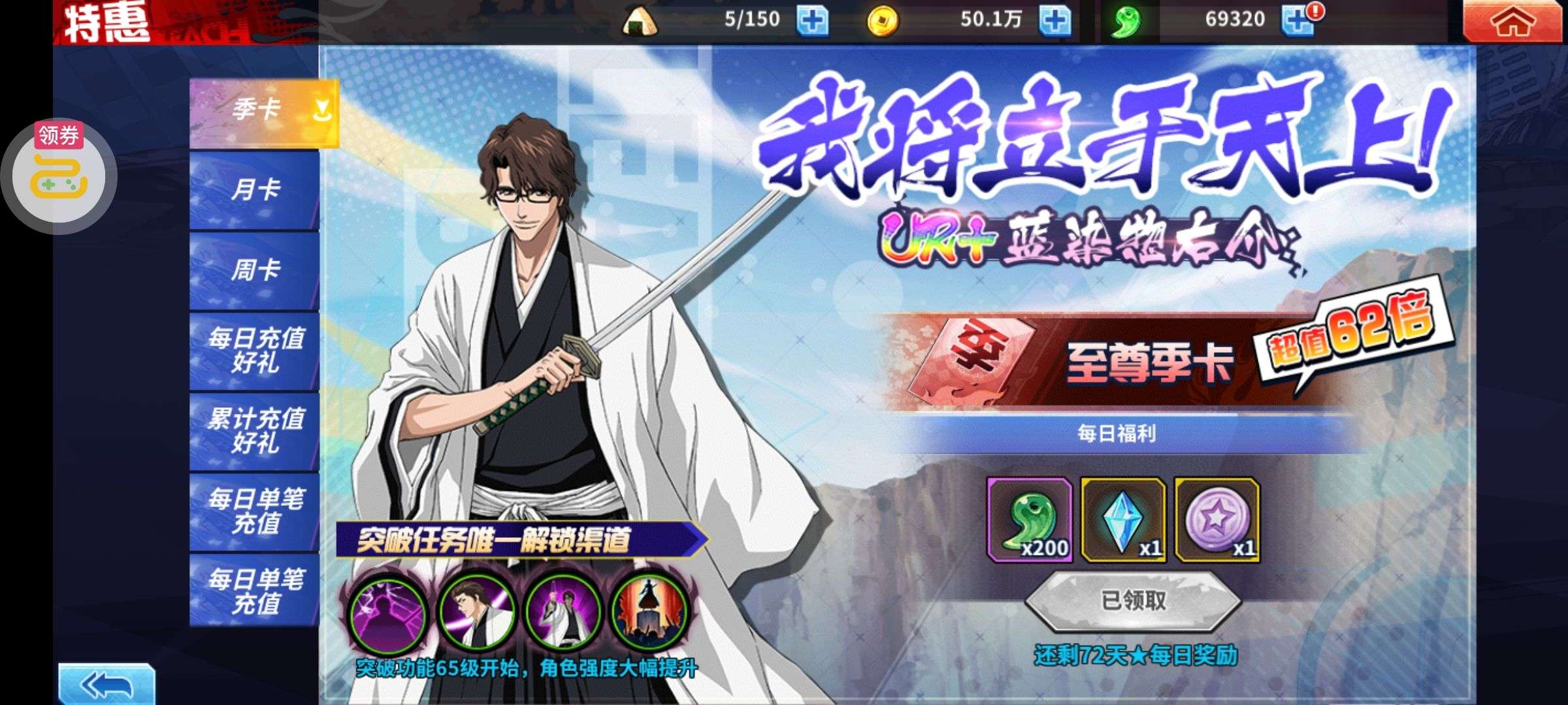 开了双月卡➕季卡,ur+自选够,武器自选够