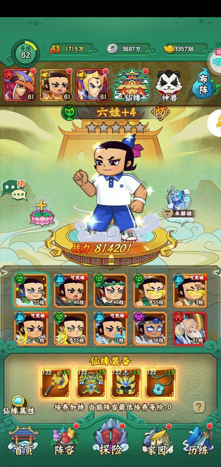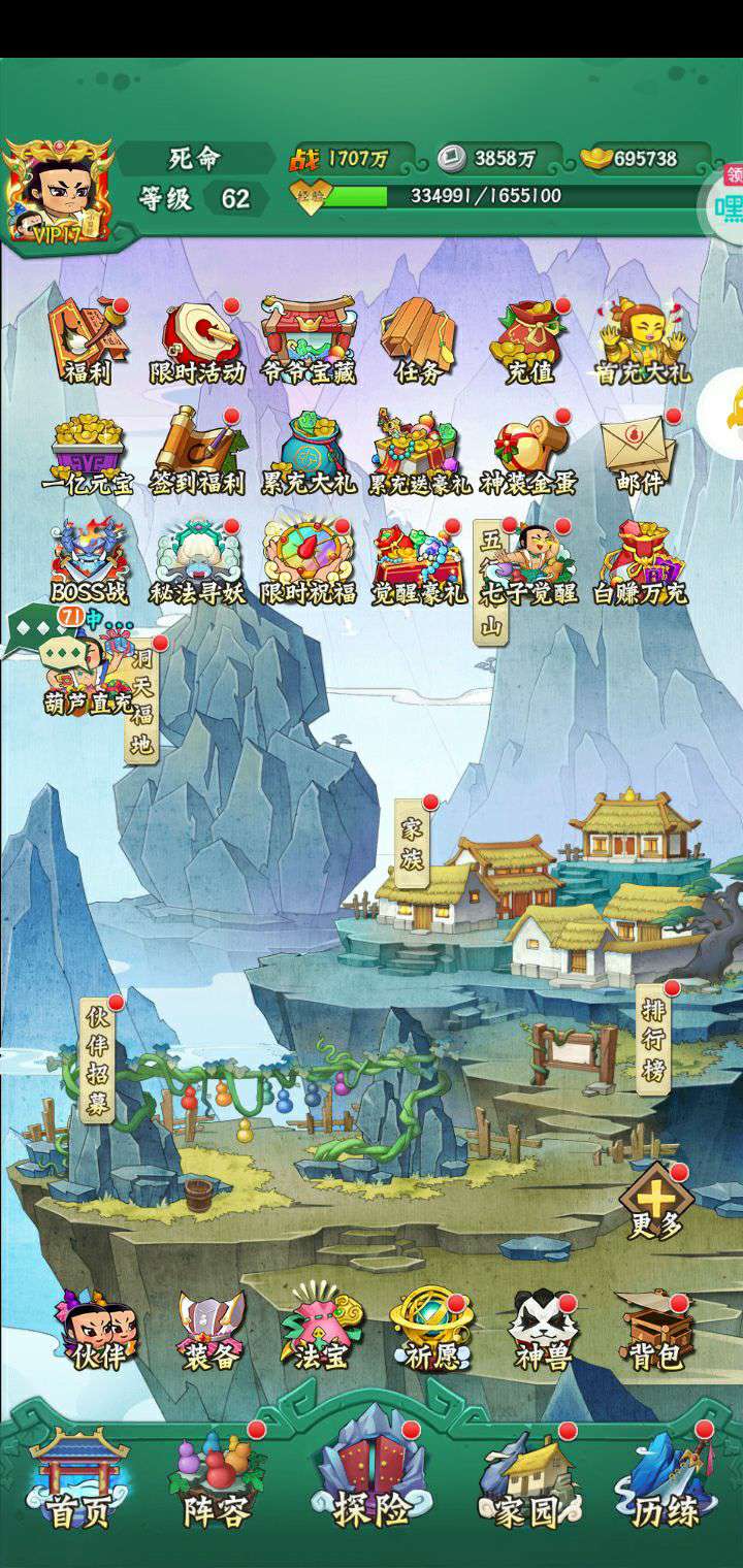 60级 一件红装 两套金装 300多万战力七娃 总战力接近700万 区排名第九 vip17