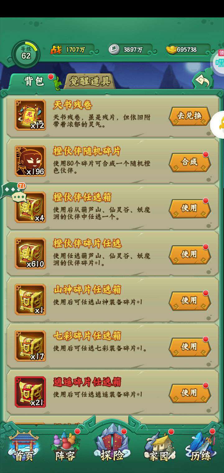 夺宝券*1、比武令*1、5星随机将魂*10(每个账号限领一次)
