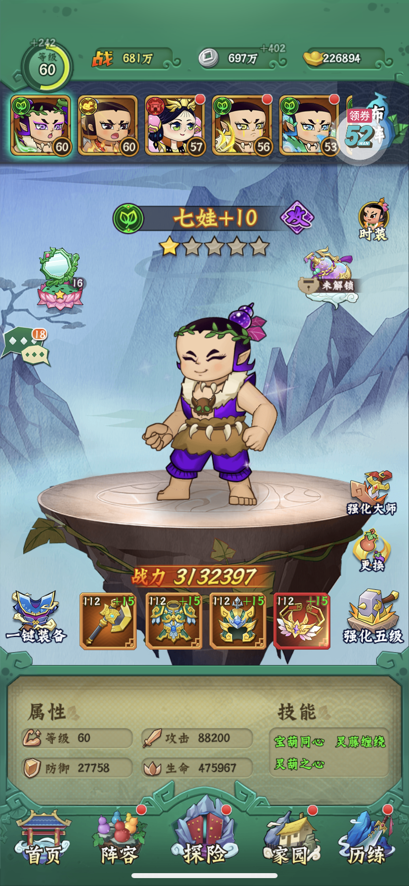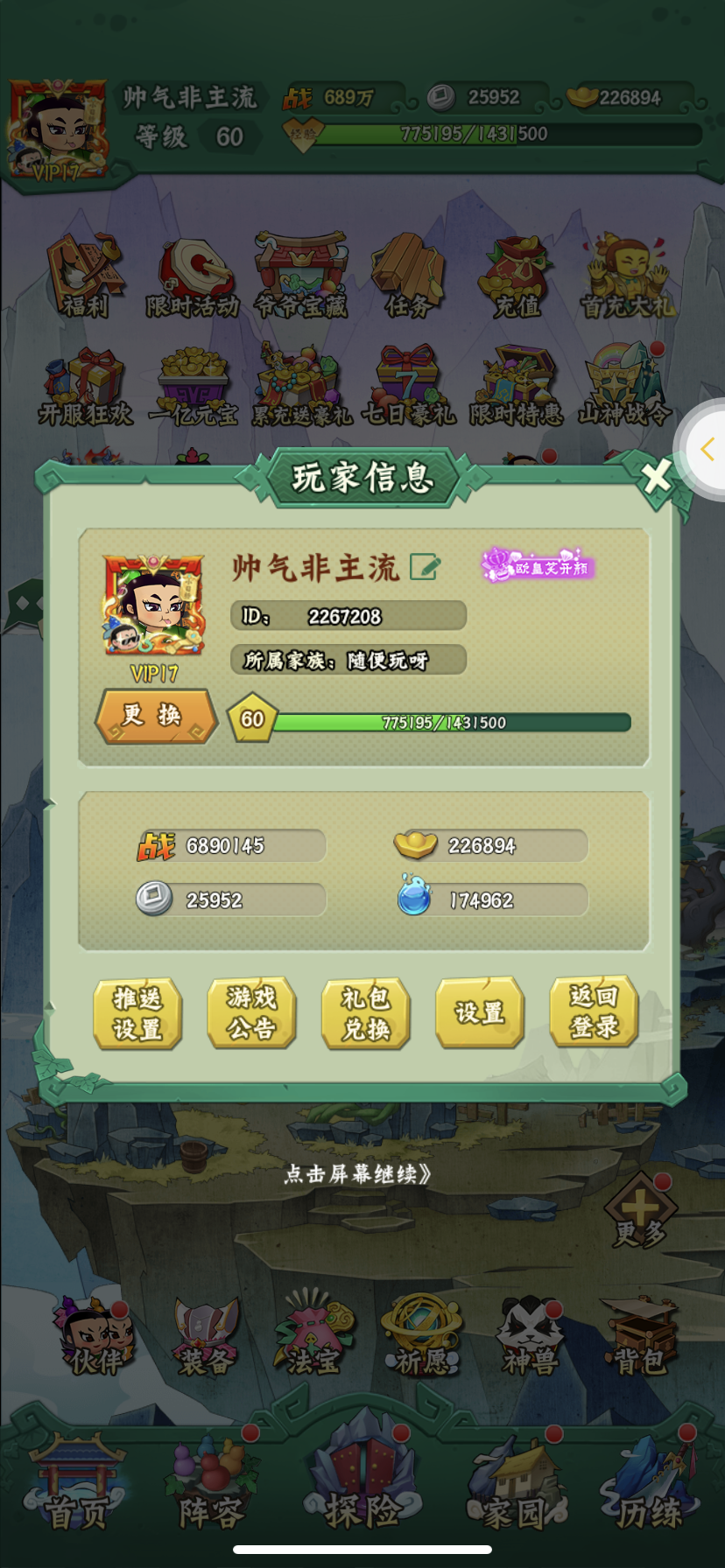 60级 一件红装 两套金装 300多万战力七娃 总战力接近700万 区排名第九 vip17