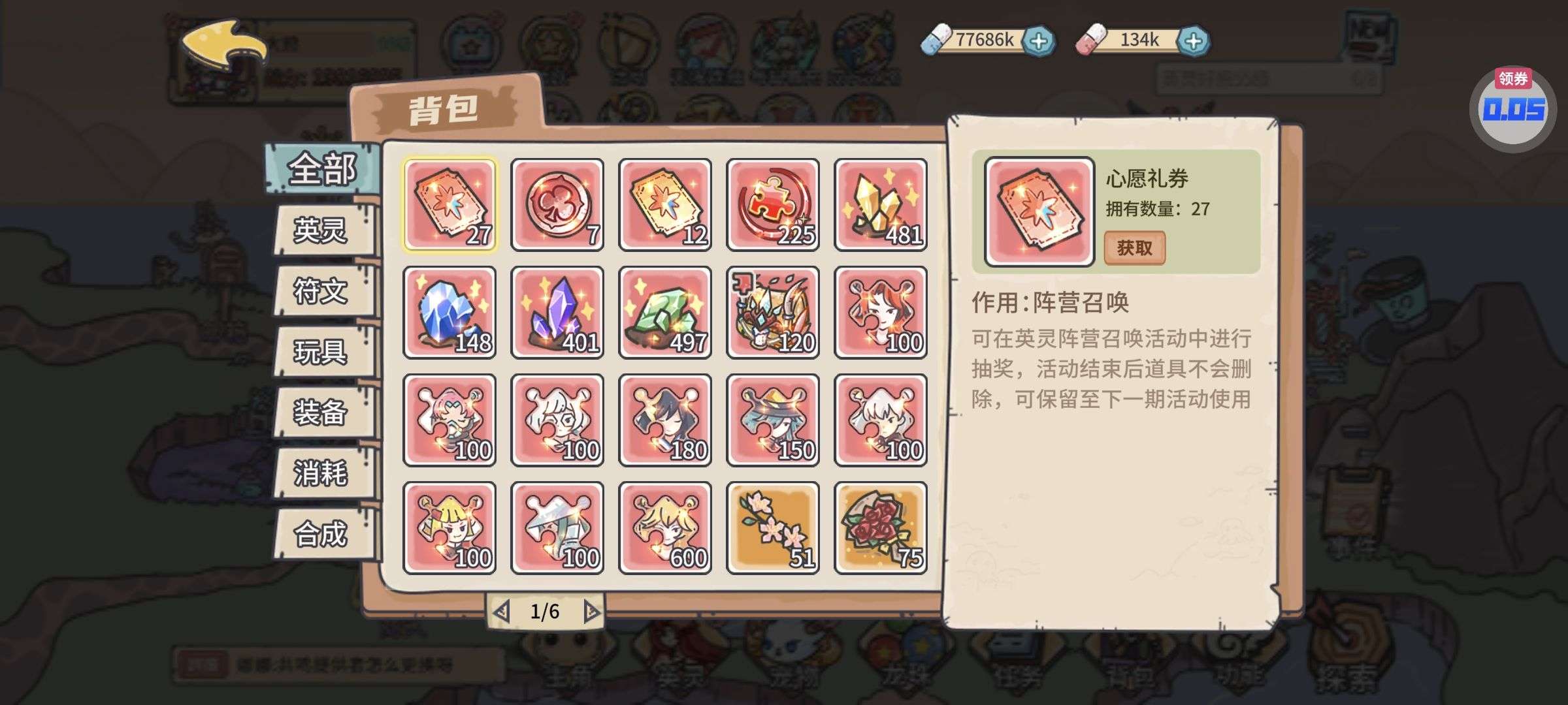 夺宝券*1、比武令*1、5星随机将魂*10(每个账号限领一次)