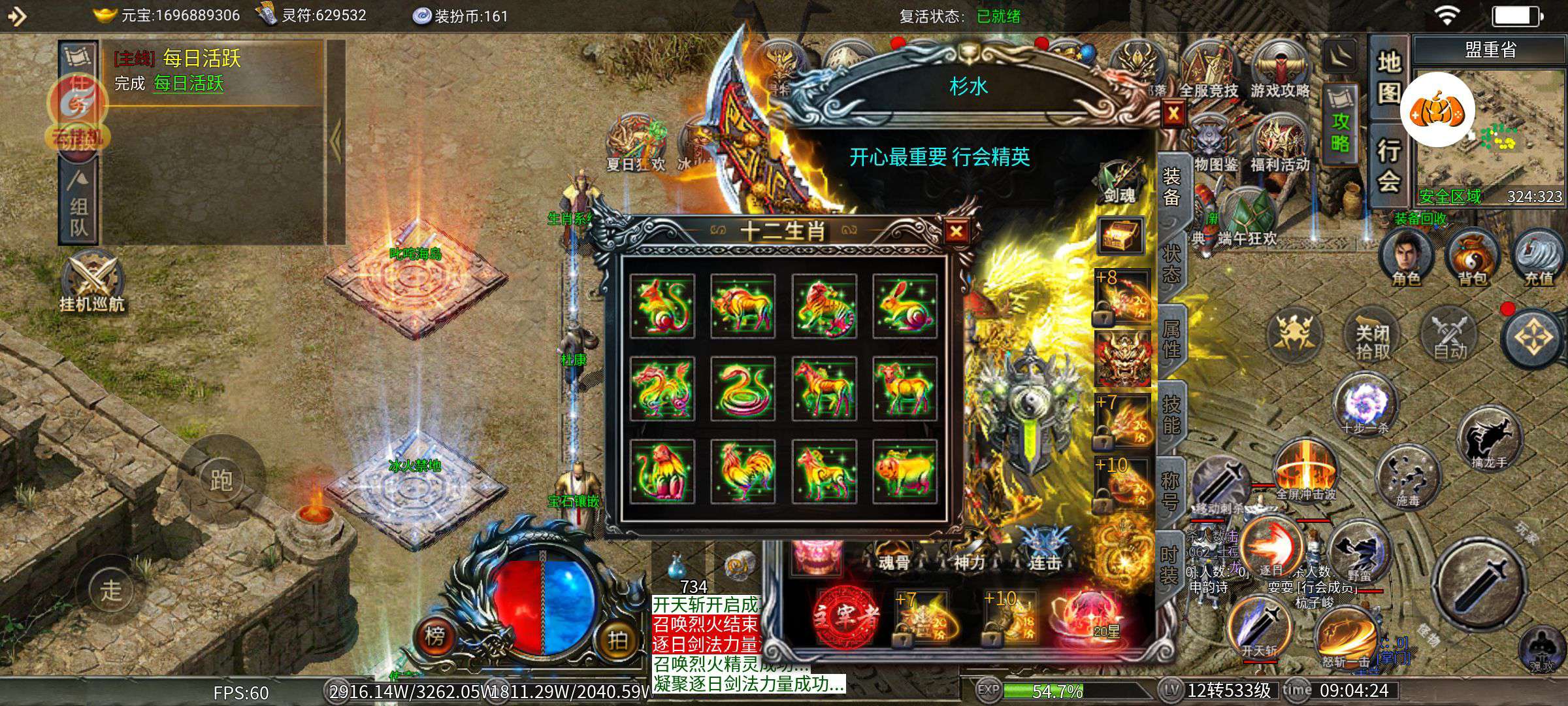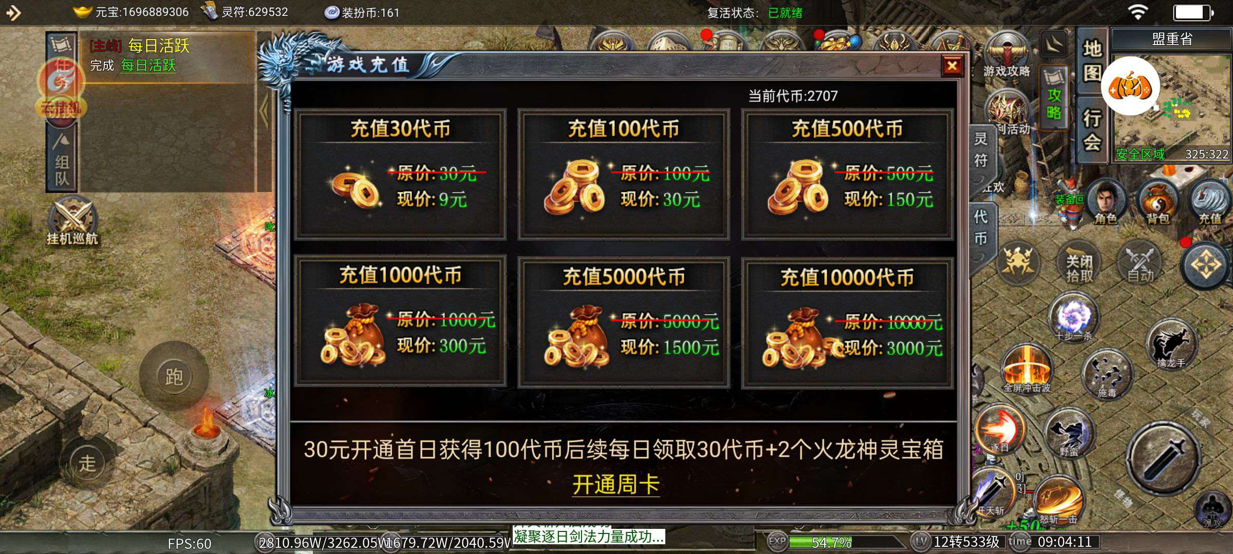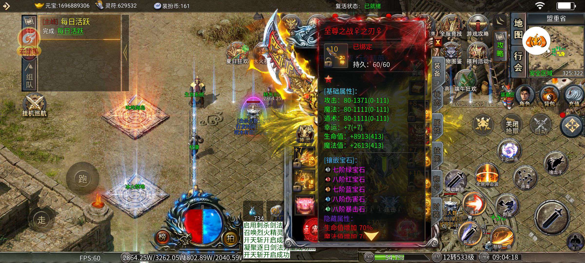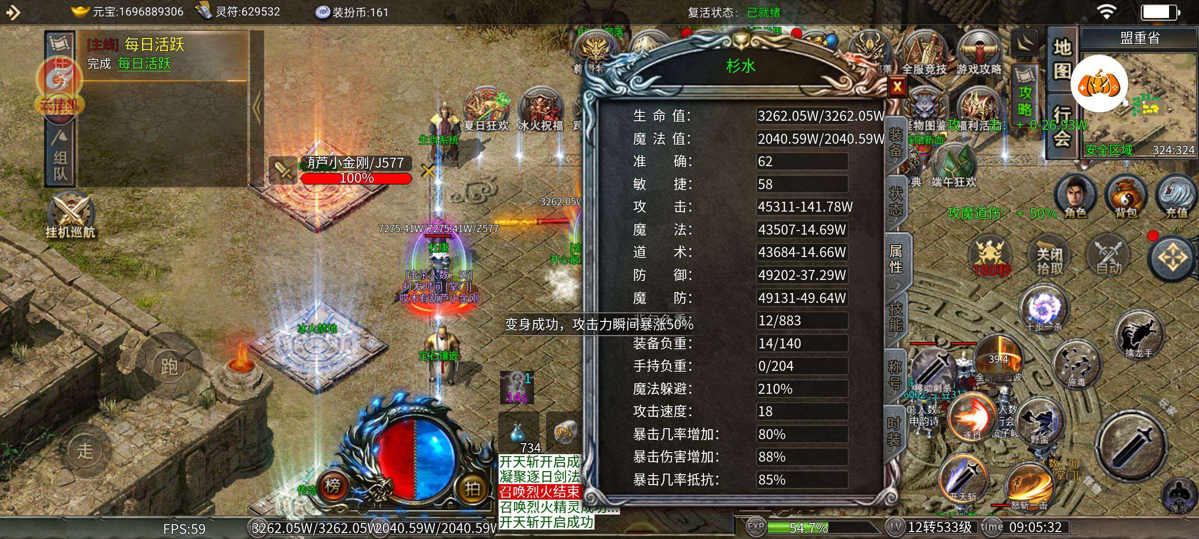 顶级装备,顶级时装,顶级生肖,代币还有2700多,属性好,称号多。小神魔满,大神魔9,随时可以满,基本称号都满。变身攻击141万