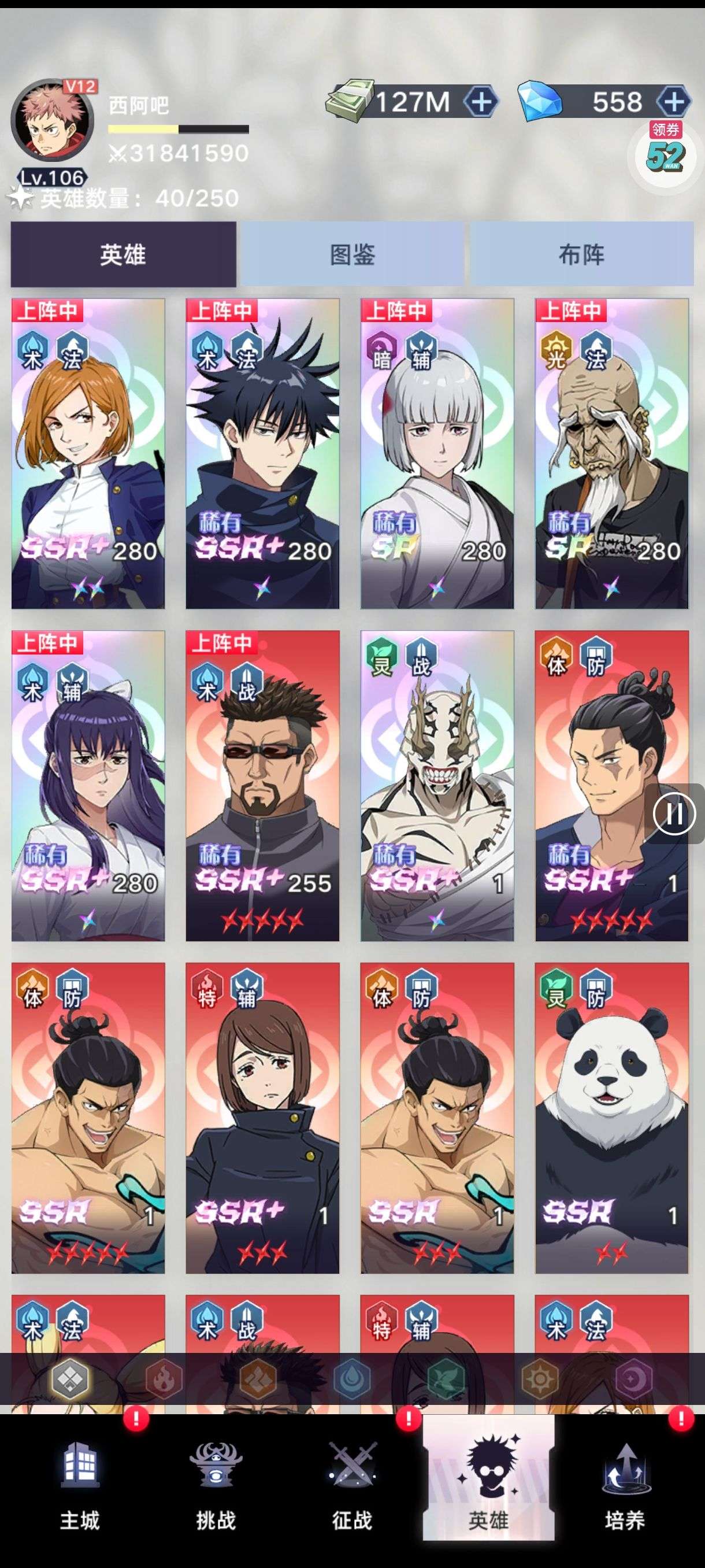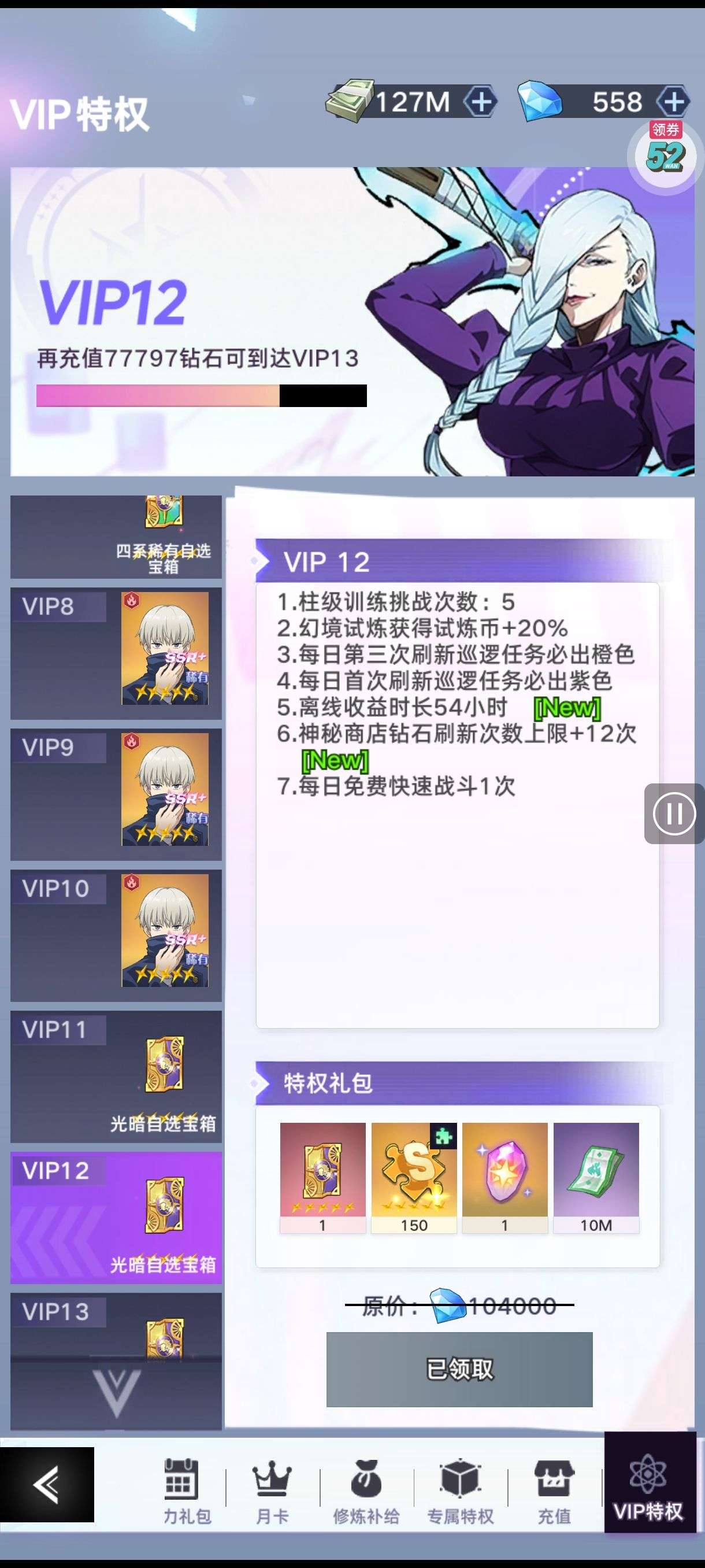 主力已成型,月卡全买,省去推图开荒时间,每天648够养老