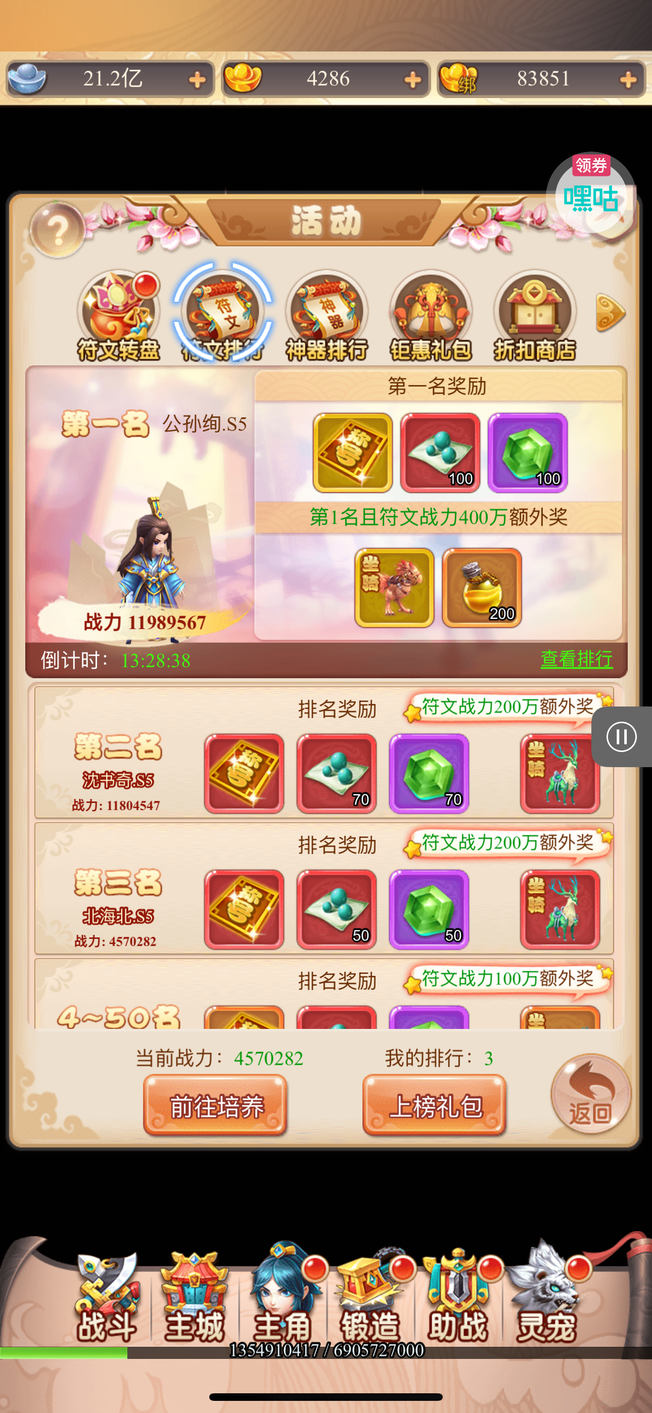 强化药剂*200、钻石招募币*20、金币*50W(每个账号限领一次)