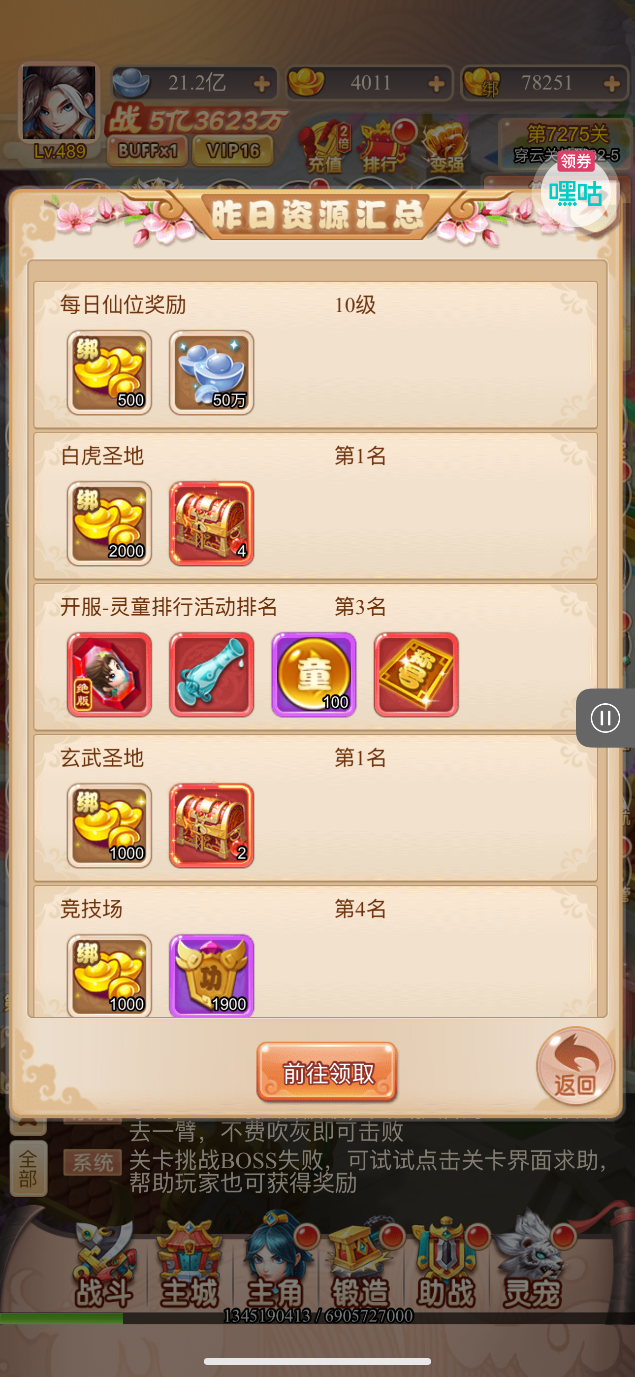 金条*588,白银占卜币*12,鬼神经验*250000(每个账号限领一次)