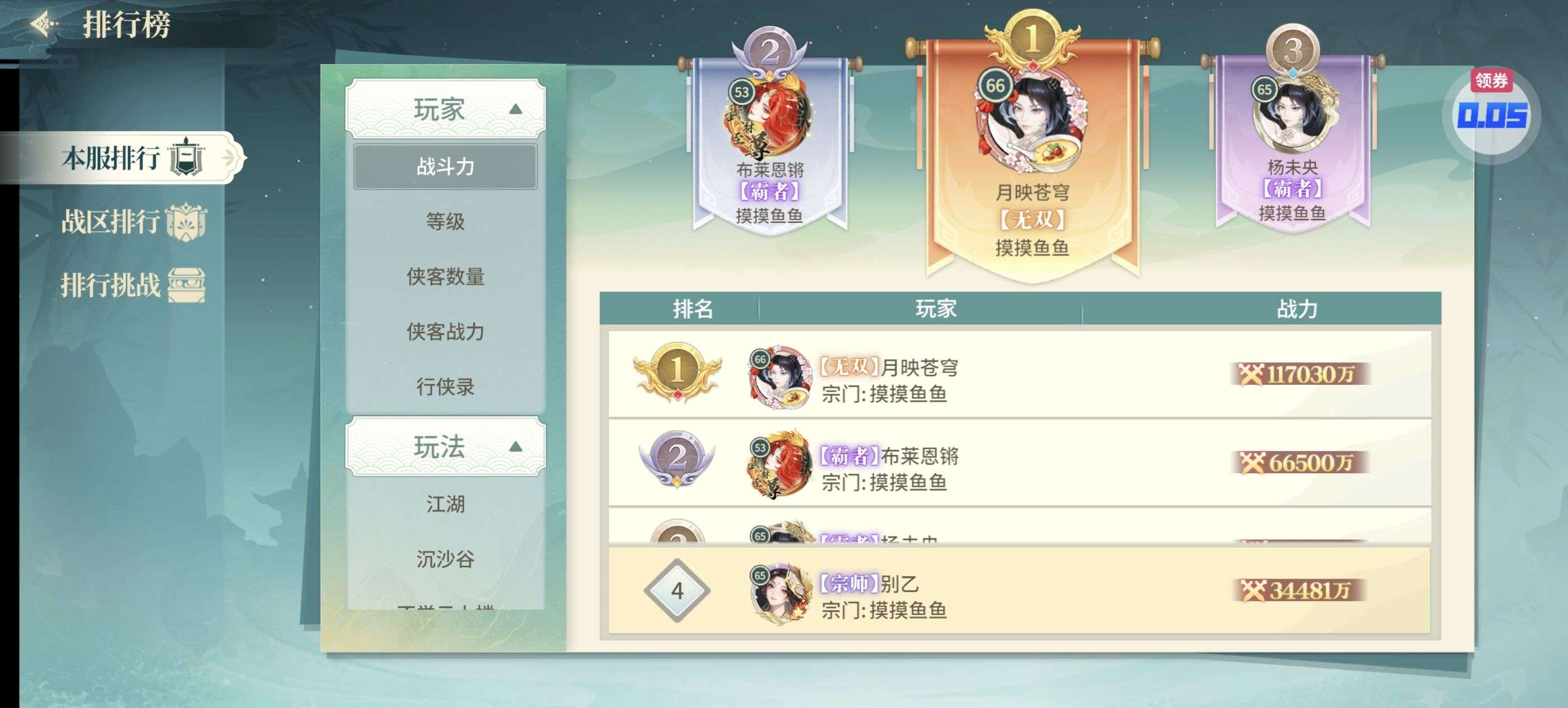 - 65级区前三