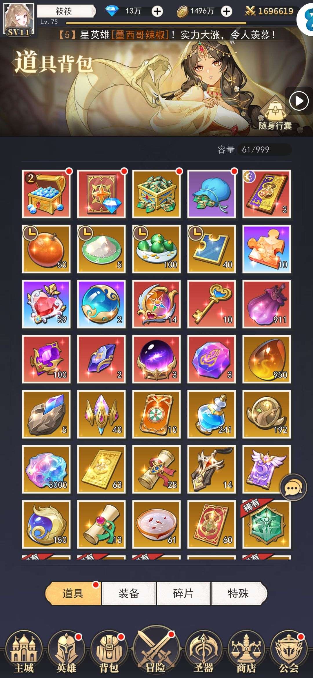 一堆圣晶石6小时*1、募魂令*10、暗淡原石*40(每个账号限领一次)