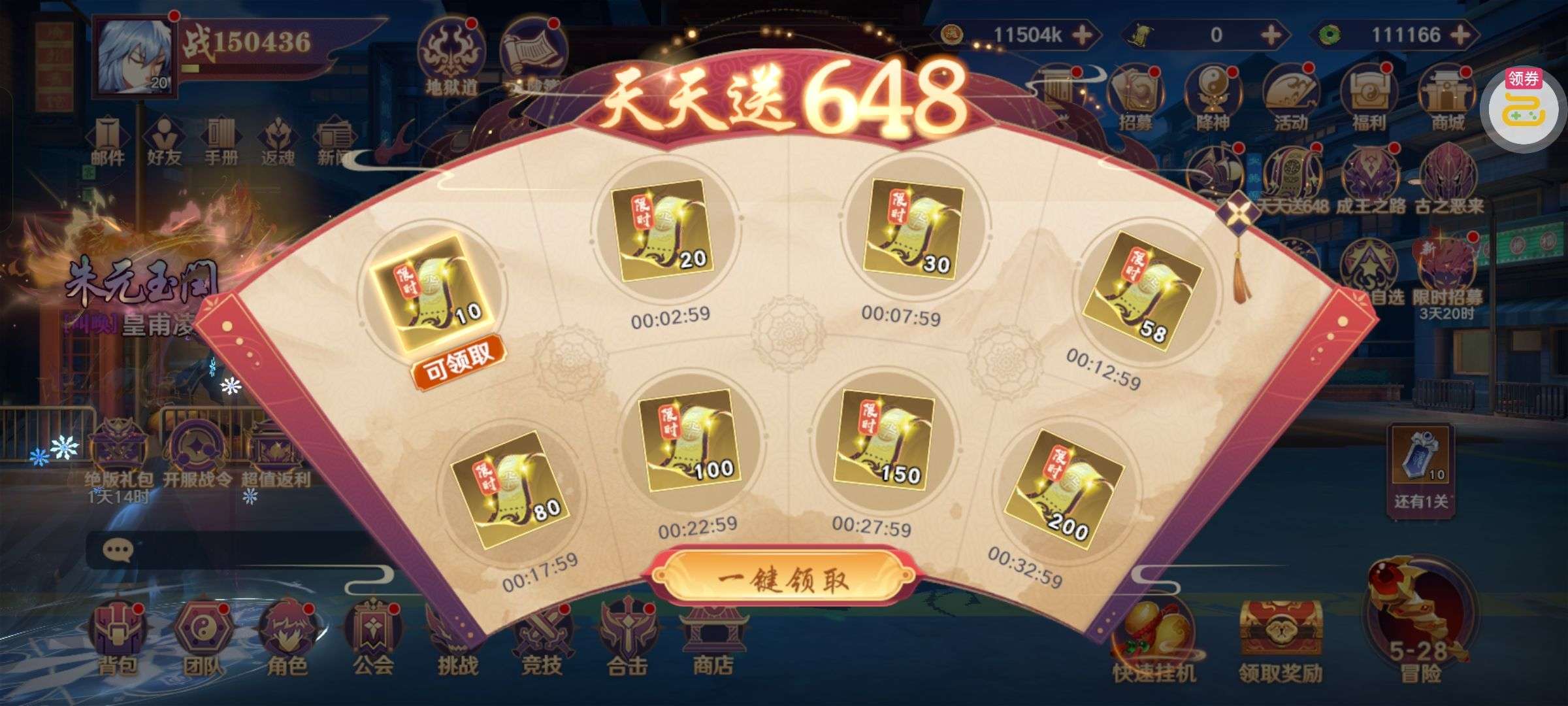 普通招募券*20、进阶凭证*100、战斗技巧*100000、金币*100000(每个账号限领一次)
