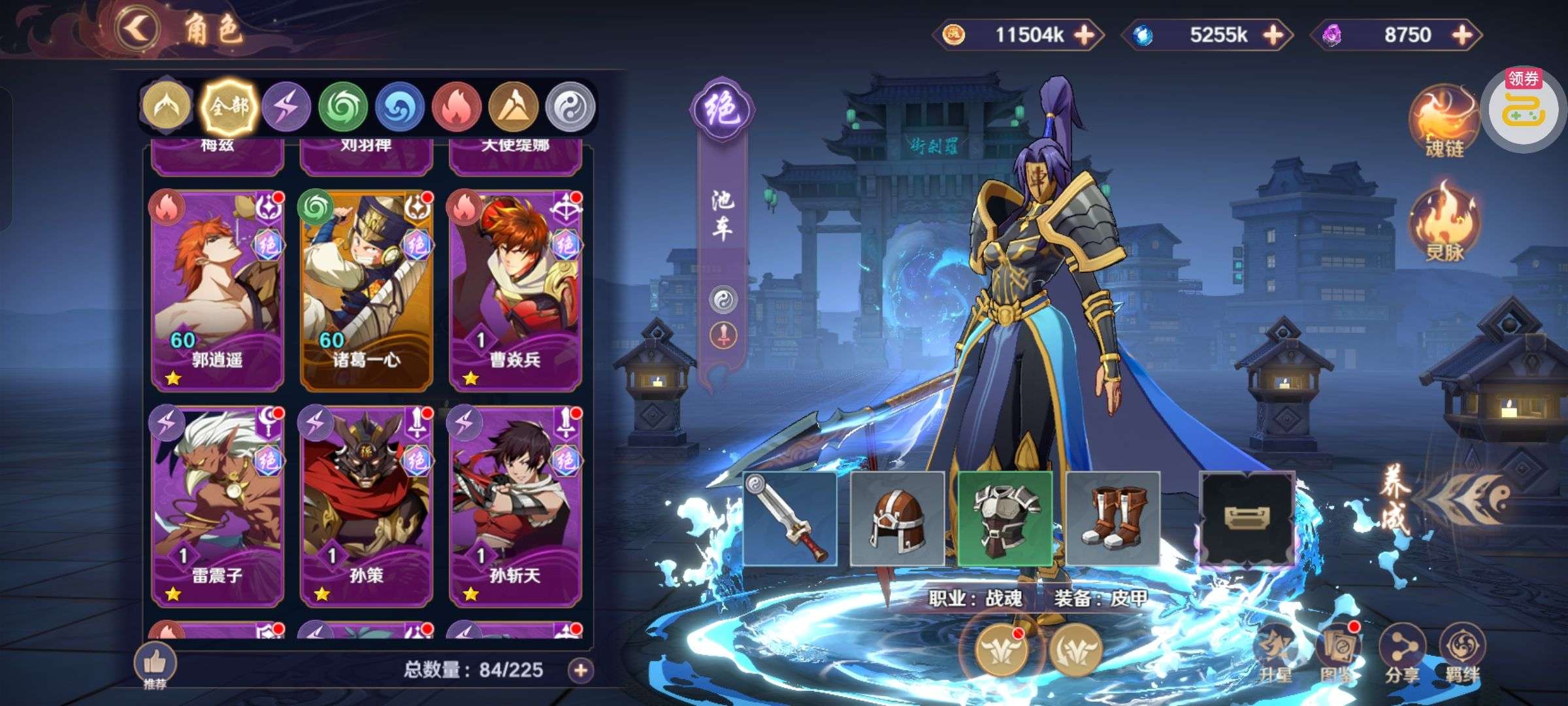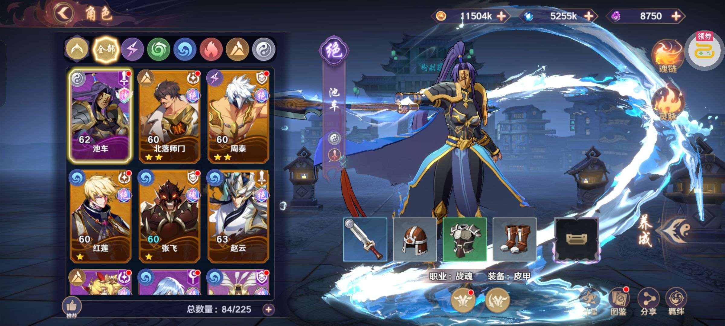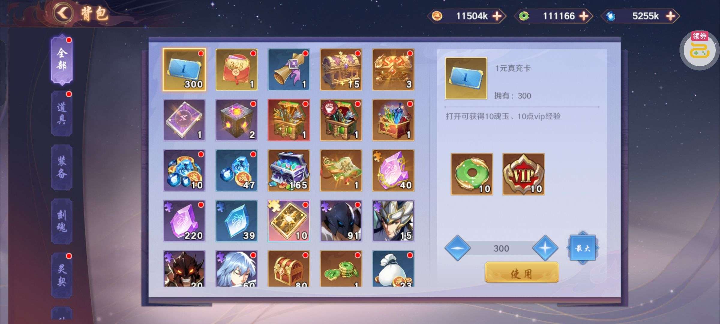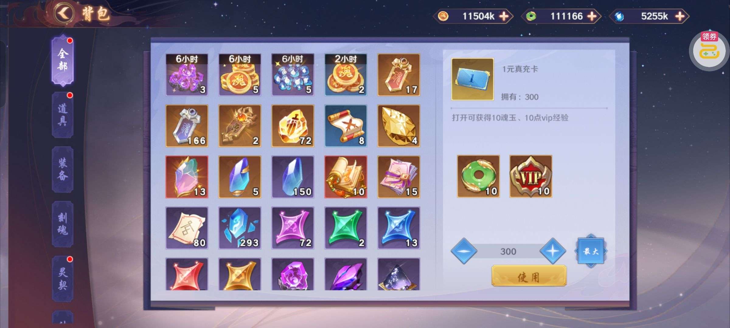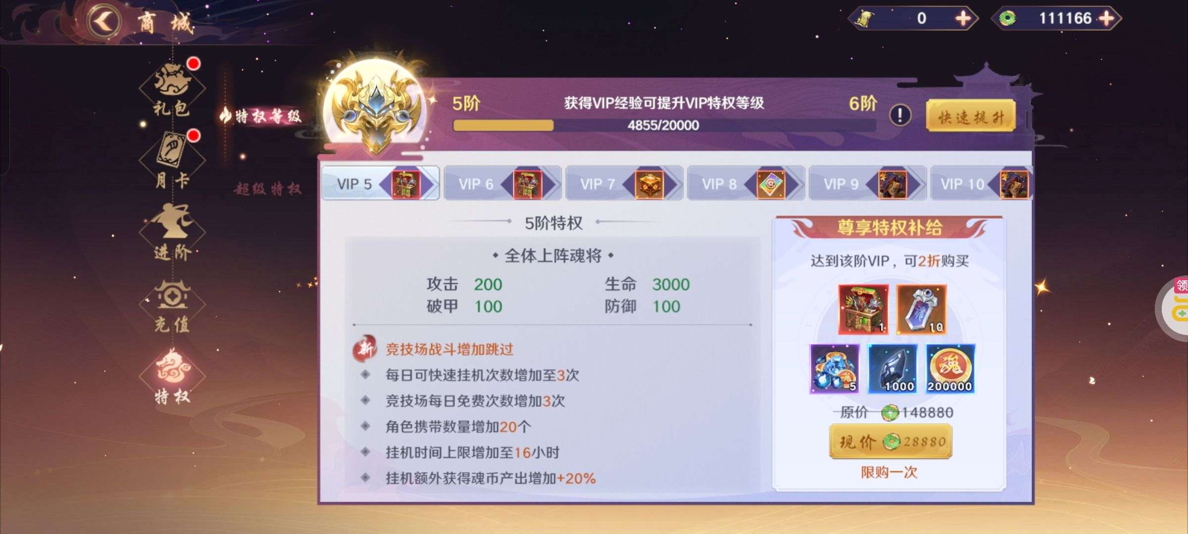 背包还有3个关羽本体,2万破晓币不是限时的一直没花,新区随活动弄了点神卡,主要氪金都在关羽身上,特权全开