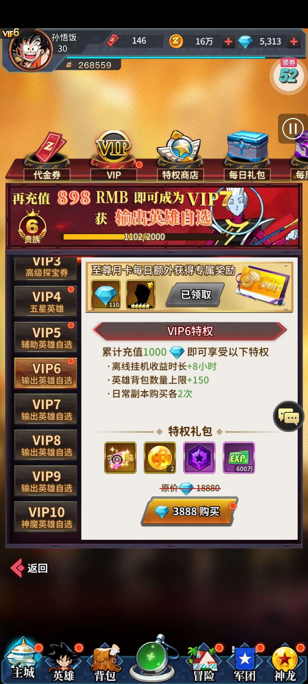元宝*1888,悟性丹*30,太极之心*30,4级攻击宝石*1(每个账号限领一次)