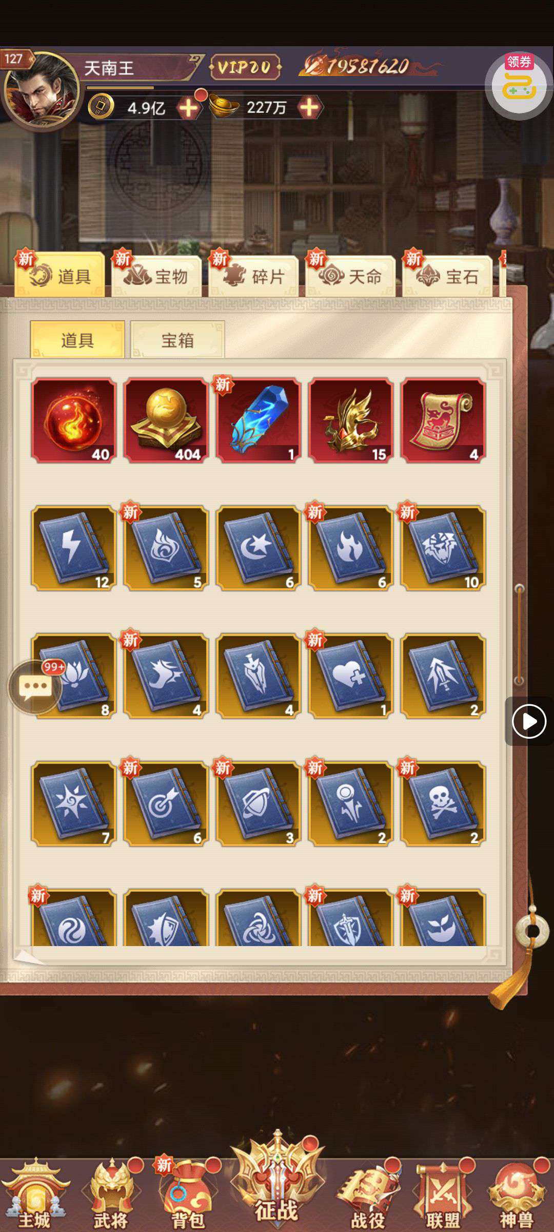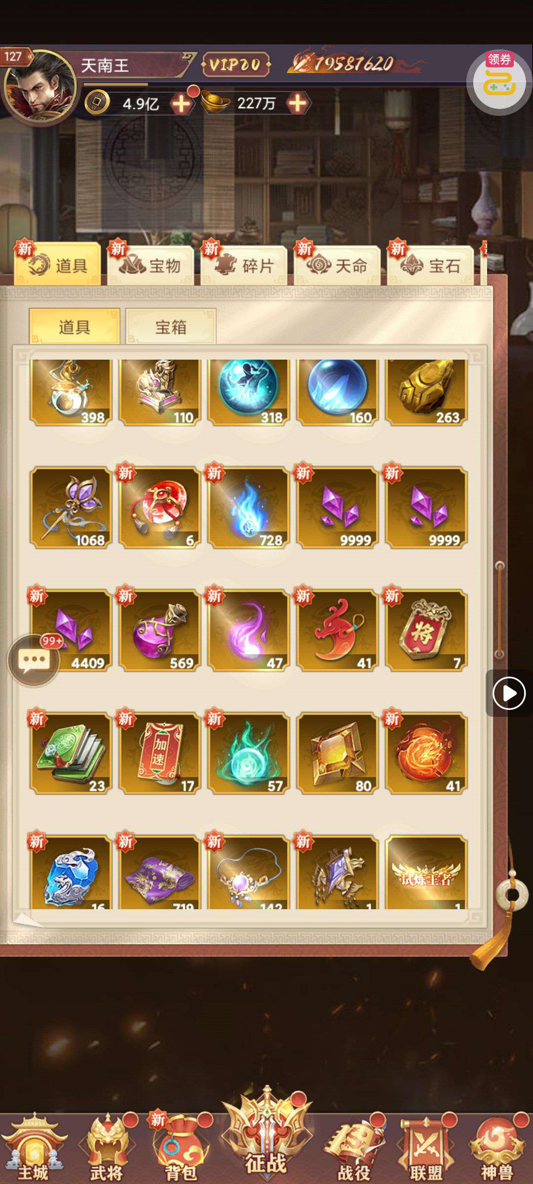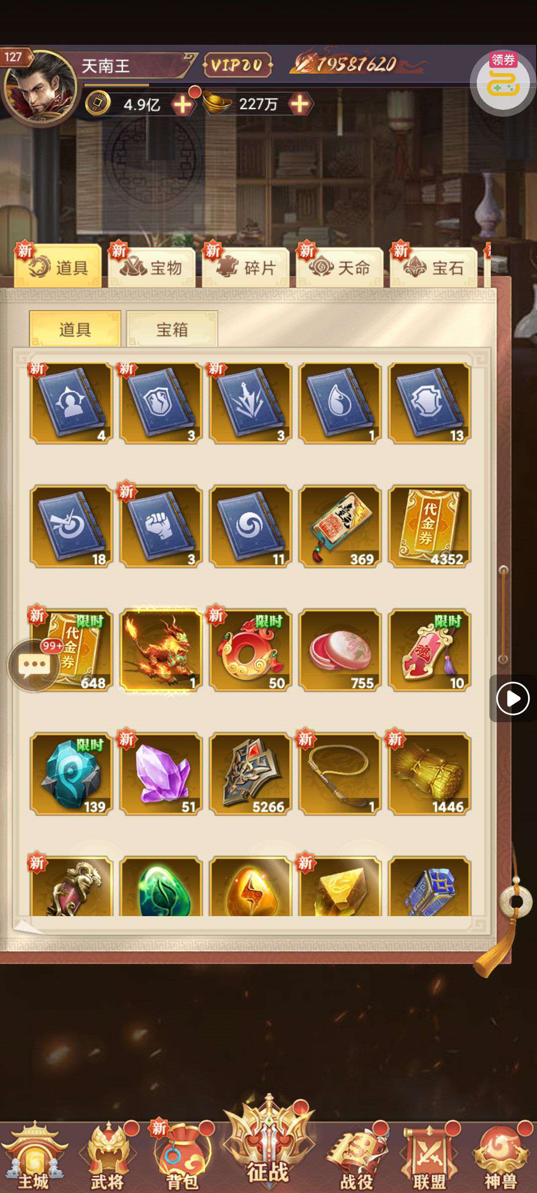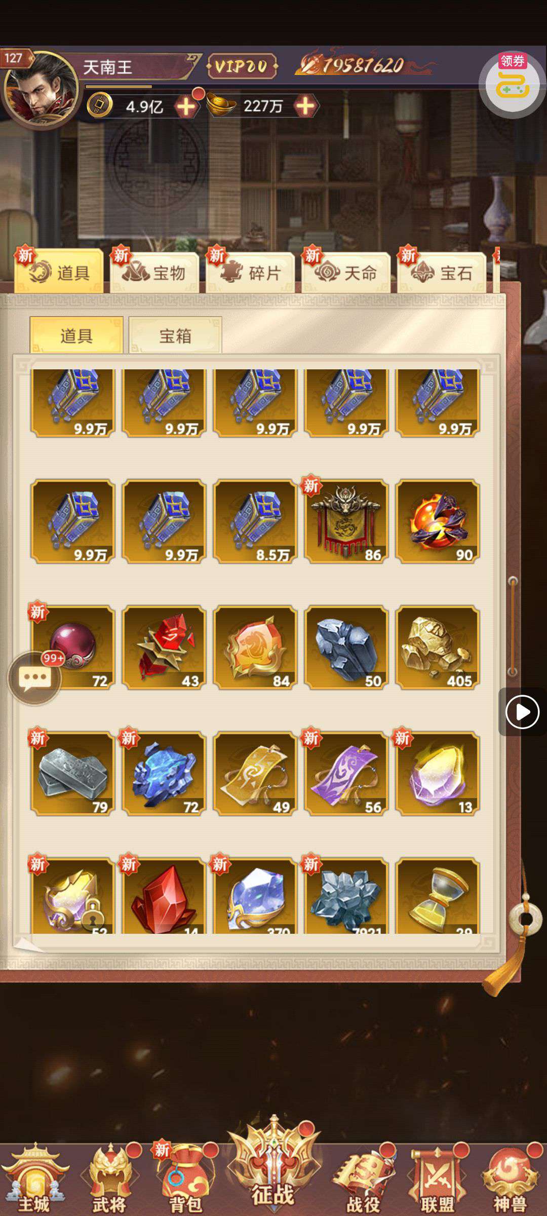 该有的基本都有了 背包还有10万代金 全区服战力第一