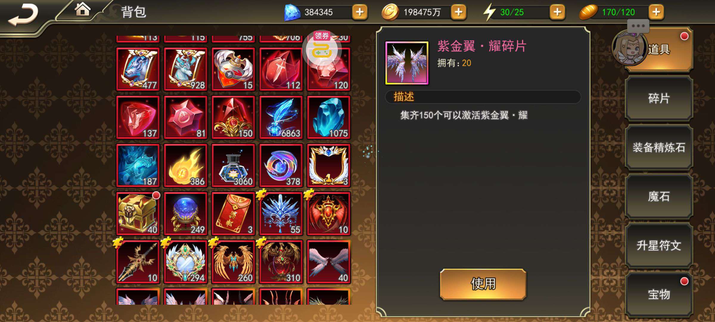 一堆圣晶石6小时*1、募魂令*10、暗淡原石*40(每个账号限领一次)