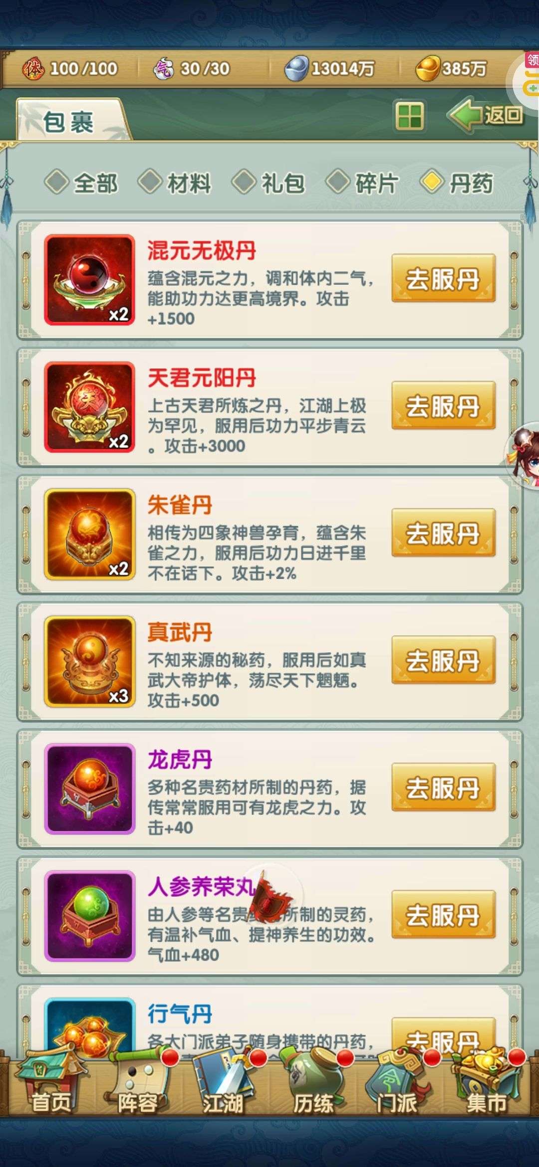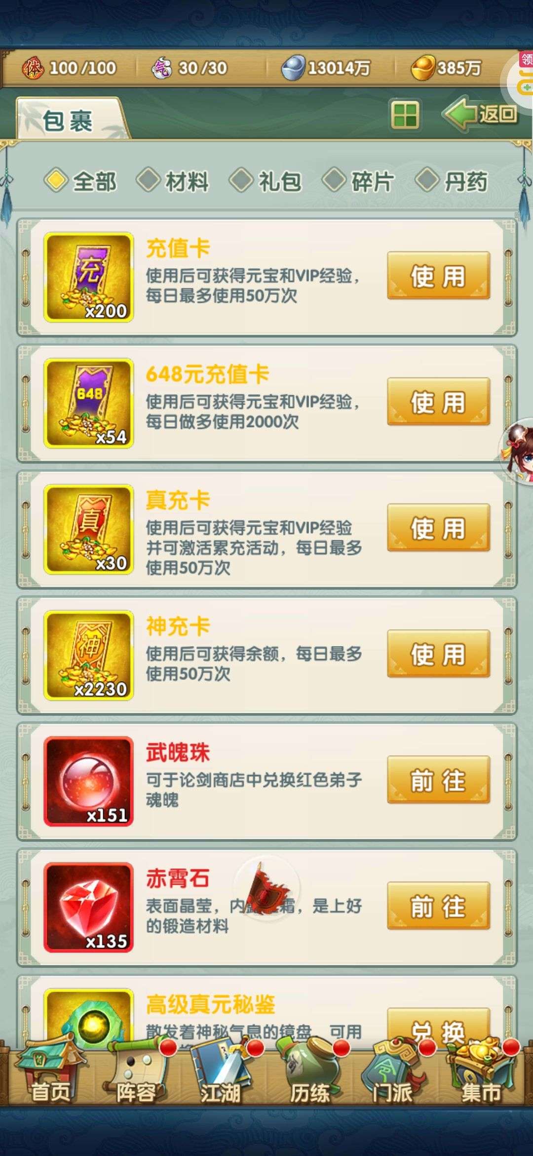 装备金甲1套赤霄3套