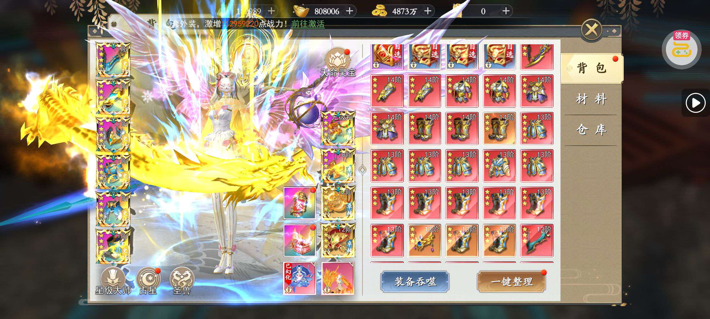 巅峰150级,全套11阶彩装,还有很多材料没用