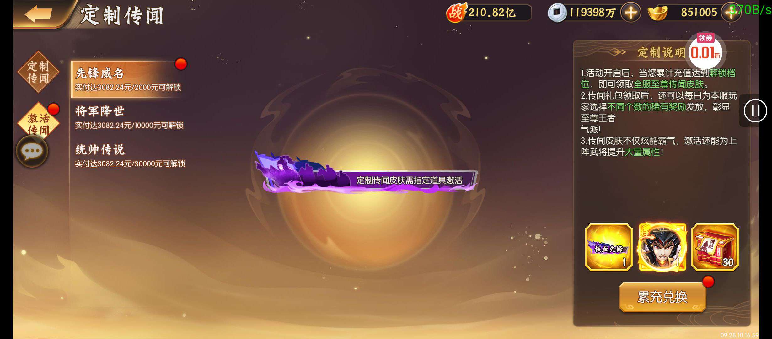 高级招募令*5、震天鼓锤*50、神兵升级石*100(每个账号限领一次)