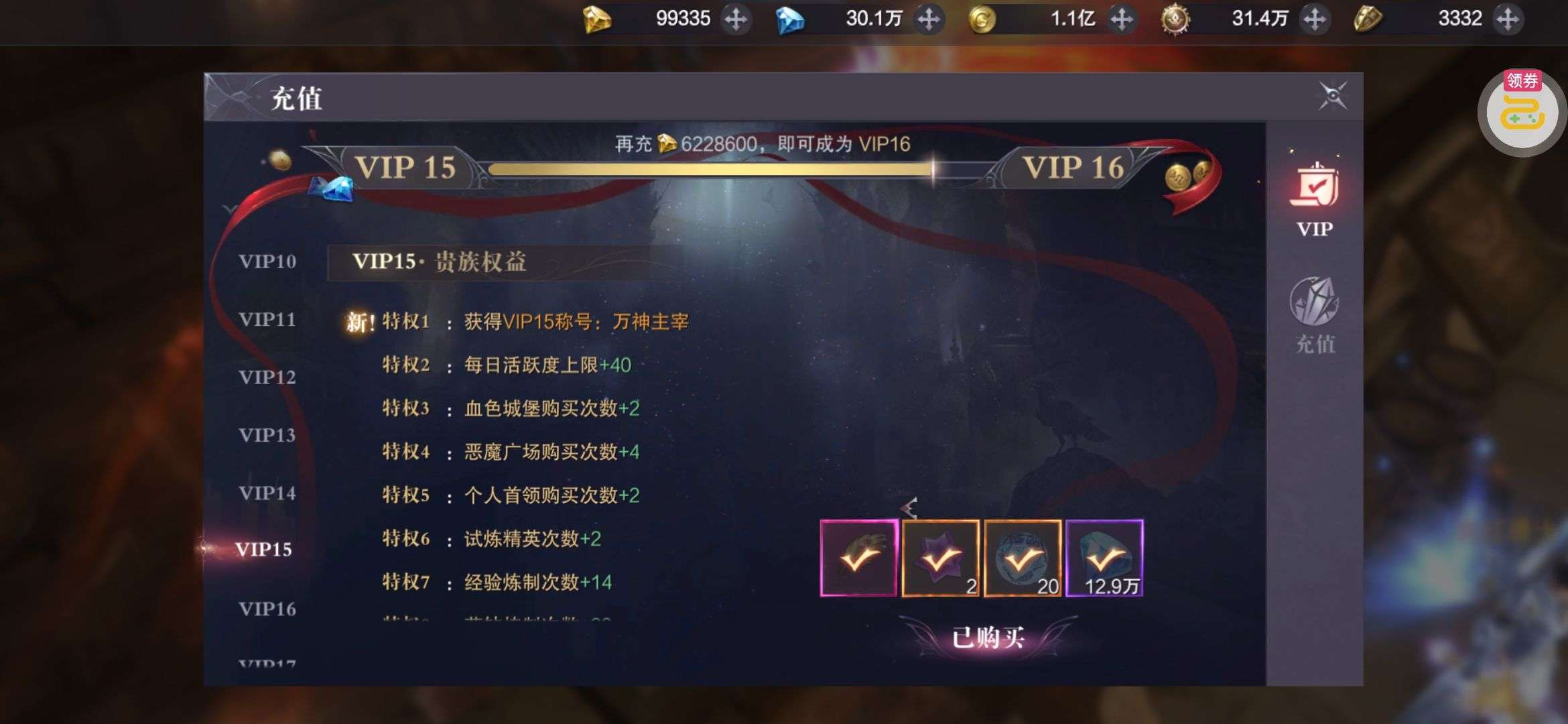 金钻价值都过千了,还有很多提升战力的空间,懂的来
