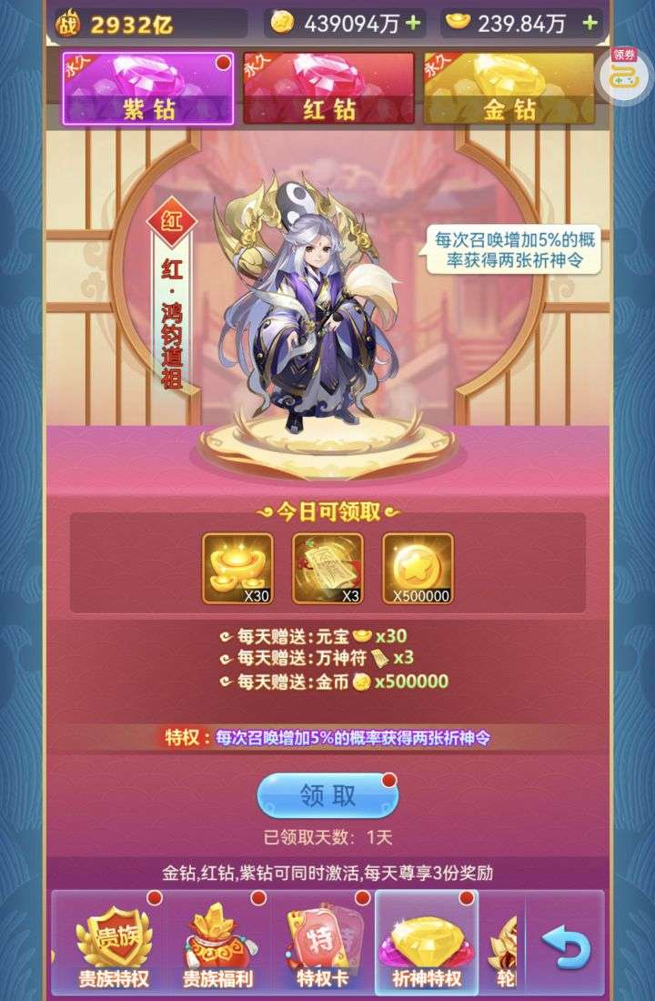元宝*1888,悟性丹*30,太极之心*30,4级攻击宝石*1(每个账号限领一次)
