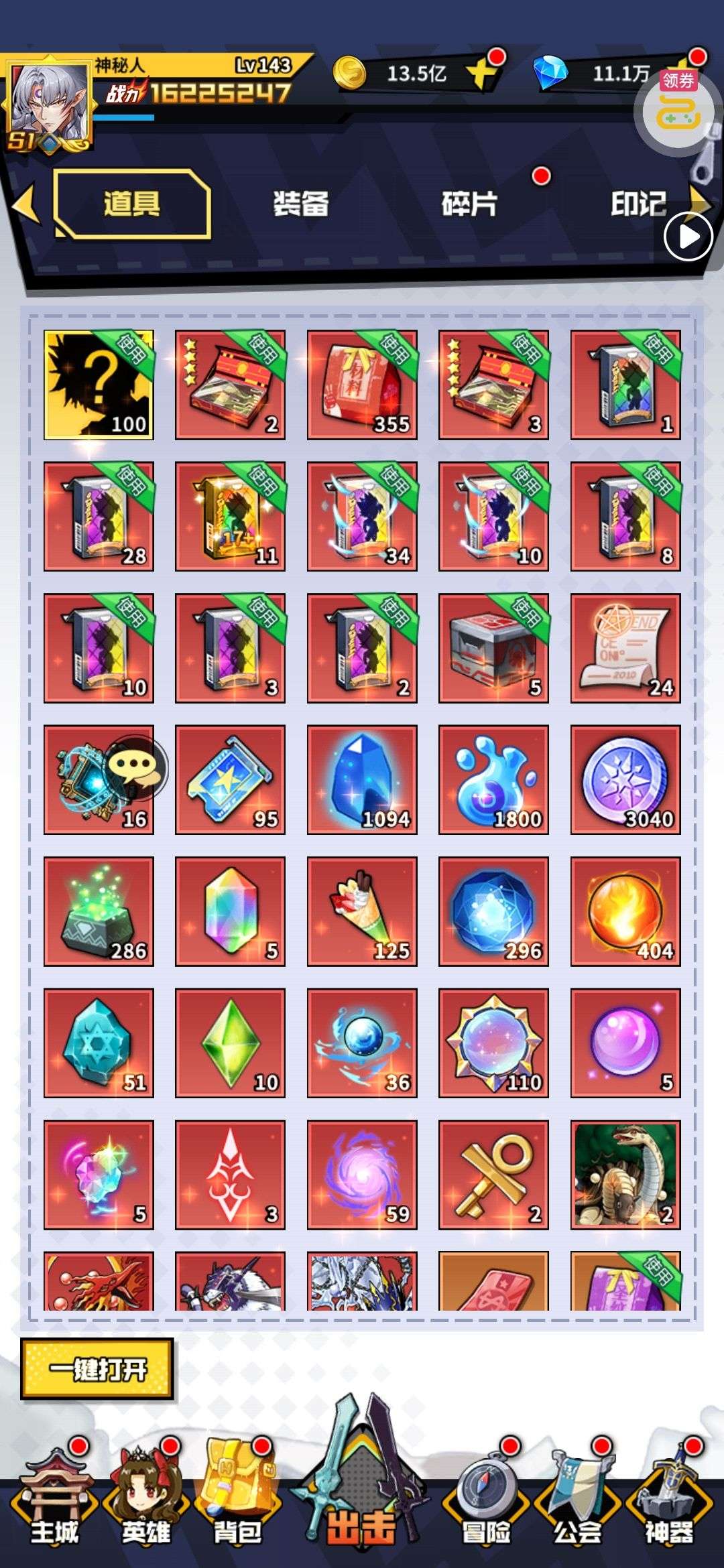 普通招募券*20、进阶凭证*100、战斗技巧*100000、金币*100000(每个账号限领一次)