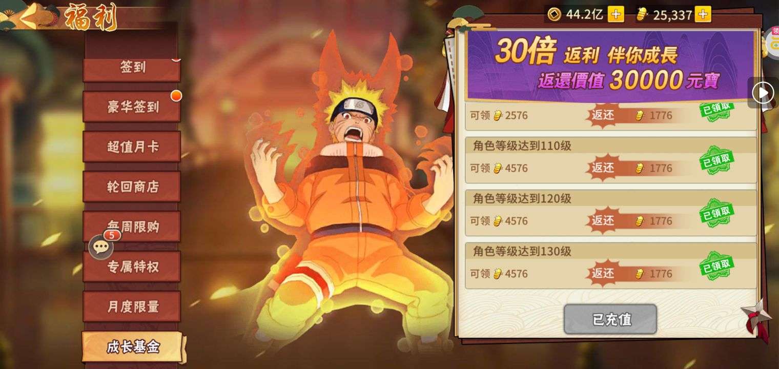 满技能九喇嘛,满技能须佐鼬,还有10级勾玉和一堆资源