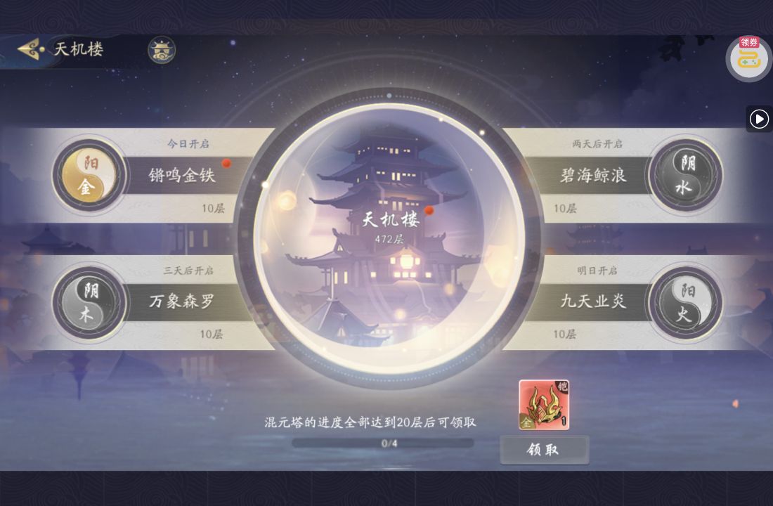 五行心法x1、洗炼石x20、2倍经验秘药x2(每个账号限领一次)